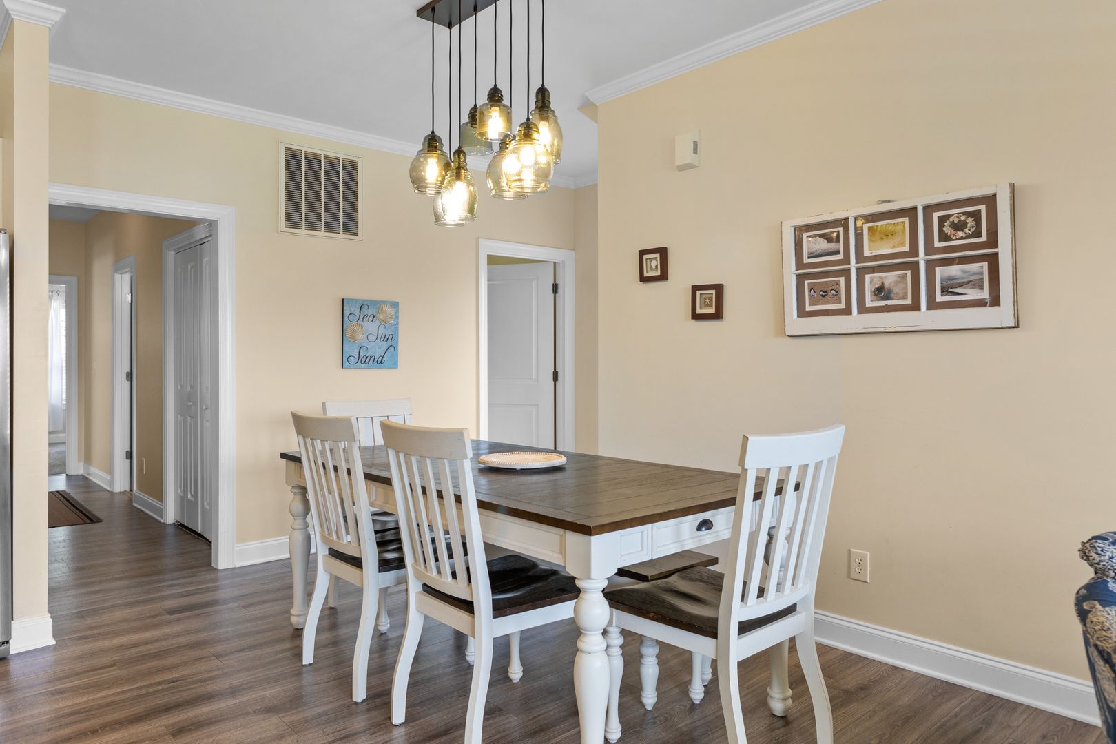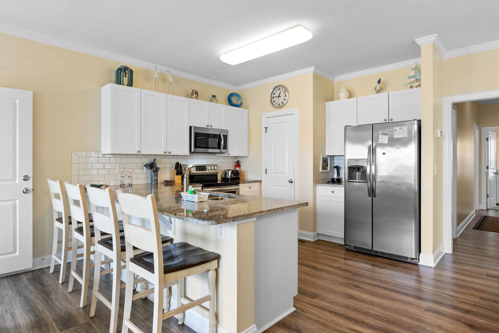 Up one level, will welcome you to an open concept living room, a fully equipped kitchen with granite countertops, and a traditional dining table that would work well as a desk if needed. Access to the front deck with outdoor furniture will be your favorite place for your morning quiet time, sipping your coffee.