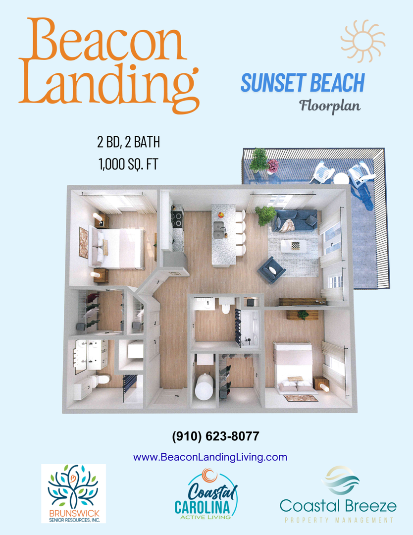 Beacon Landing is a vibrant, welcoming active, coastal living community thoughtfully designed for adults aged 55 and older. Founded on the belief that quality housing and meaningful connection go hand-in-hand, we offer more than just a place to live—we provide a place to thrive. With modern, accessible apartments, engaging amenities, and a strong sense of community, Beacon Landing is a safe, supportive environment where residents can enjoy active, fulfilling lifestyles. Whether you're looking to downsize, meet new friends, or embrace retirement on your own terms, Beacon Landing is your landing place for comfort, connection, and purpose.