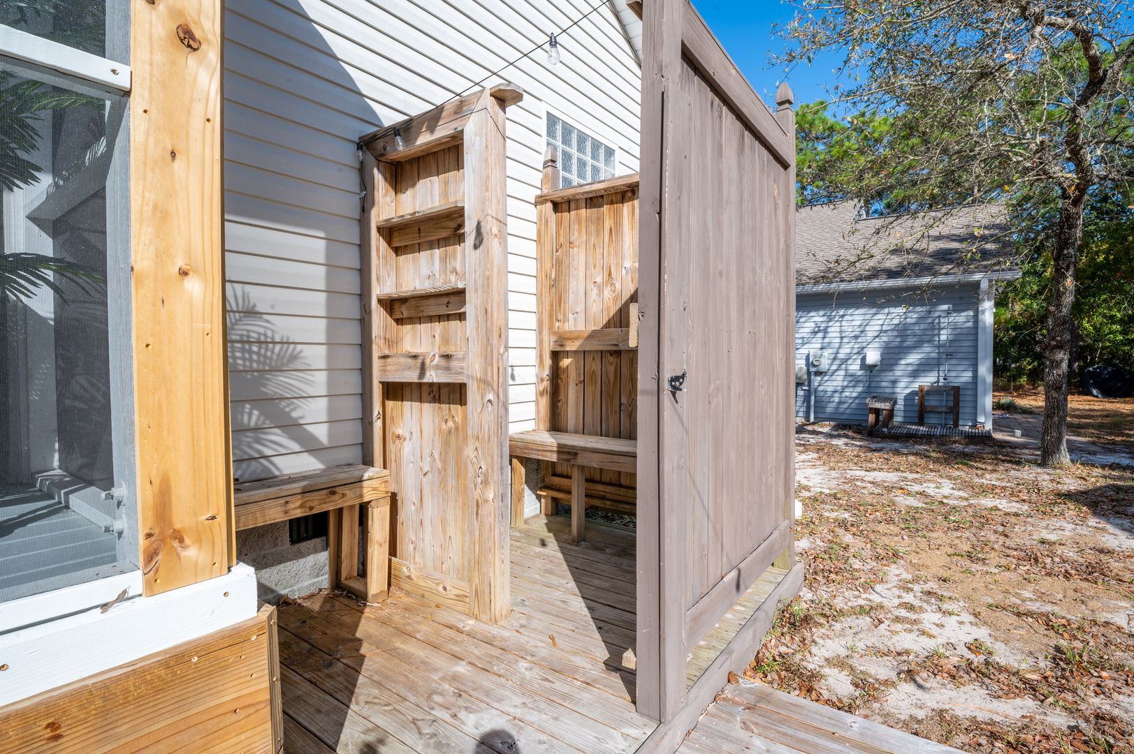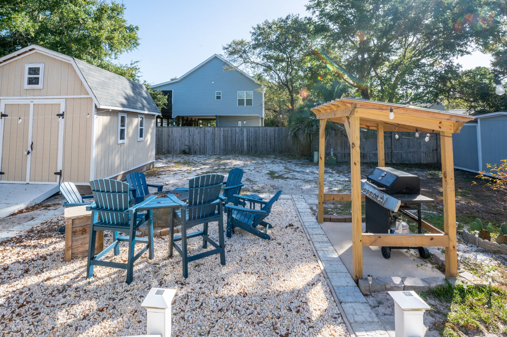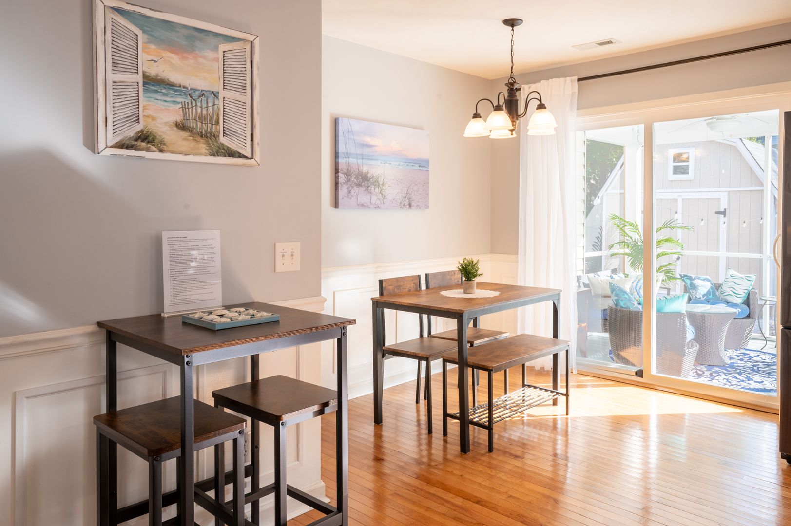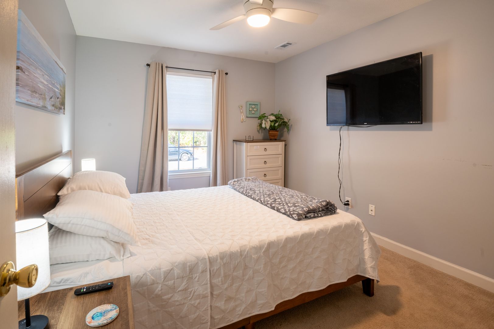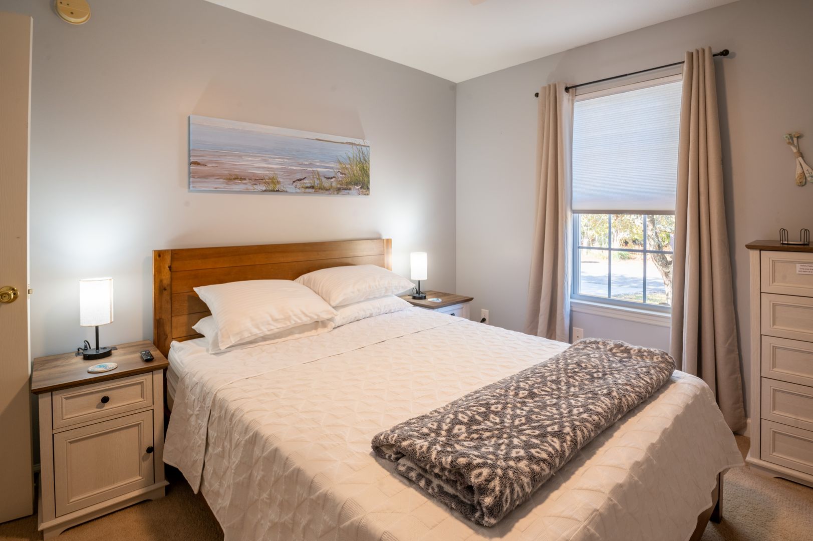 This modern farmhouse decorated home features 3 bedrooms and 2 bathrooms, fully furnished with all the comforts of home. The fully stocked kitchen and propane grill make cooking a breeze, while the washer/dryer and outdoor hot shower add convenience to your stay.