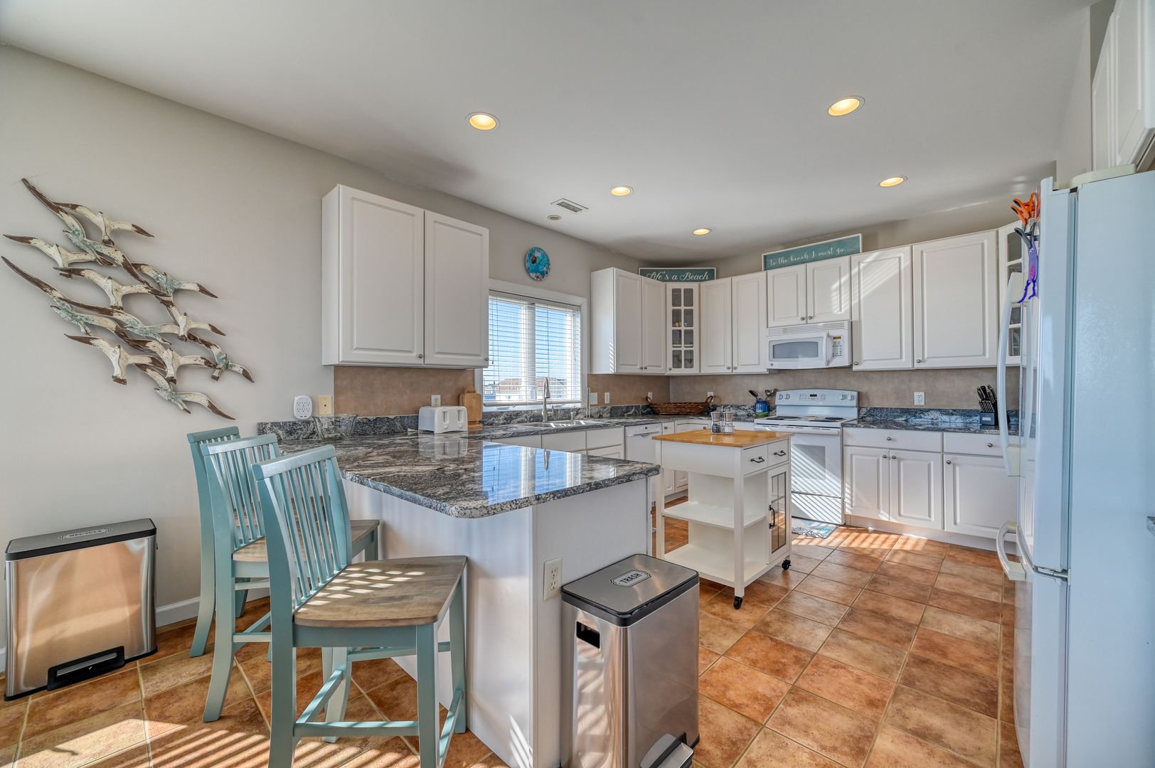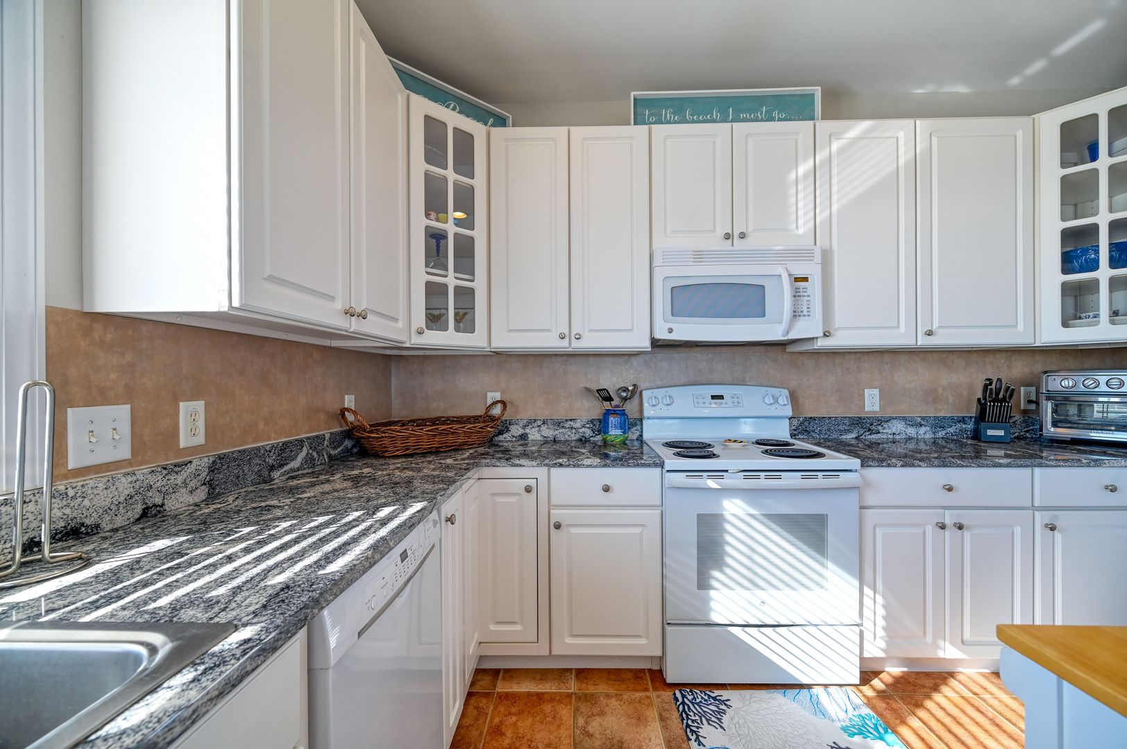 * Fully equipped kitchen with granite counters and modern appliances