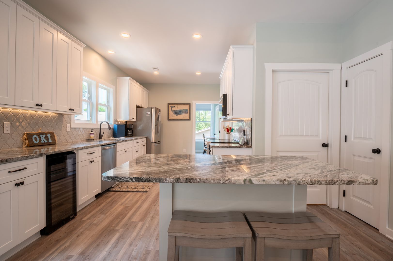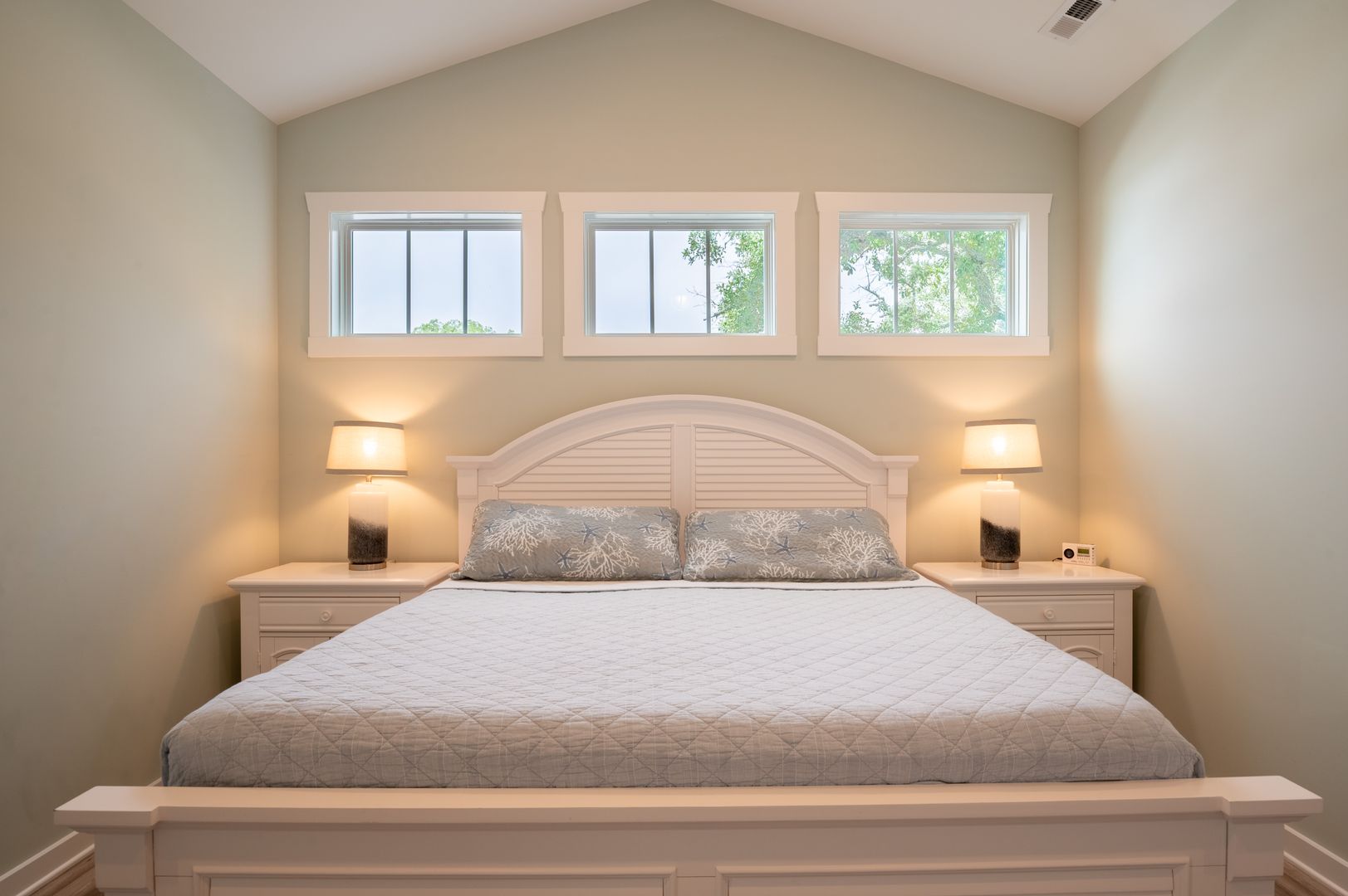 Vaulted ceilings and transom windows bring in the natural light throughout. High-end, comfortable furnishings and quality fixtures abound in this beautifully appointed home. This gracious beach house comes with everything you need to cook gourmet meals at home! Host your new friends in the huge shaded area under the house with POLYWOOD outdoor furniture. With a finished ceiling and generous outdoor lighting, you can shuck oysters on the raised bar, relax in the outdoor living room, and eat lunch at the outdoor dining table!