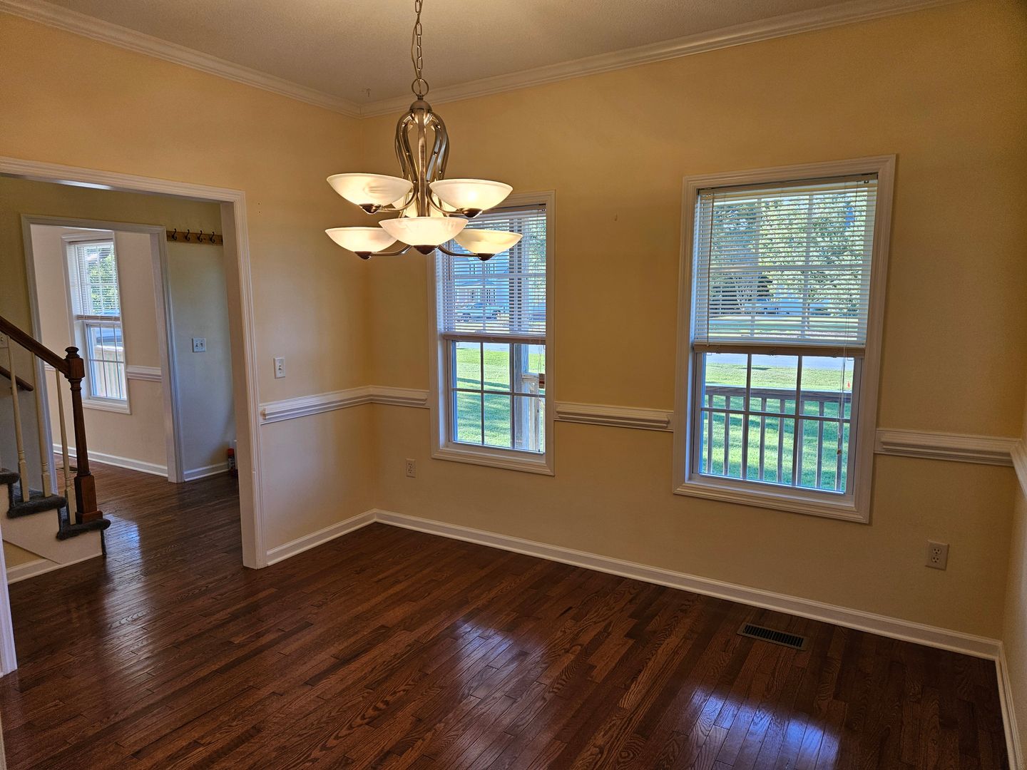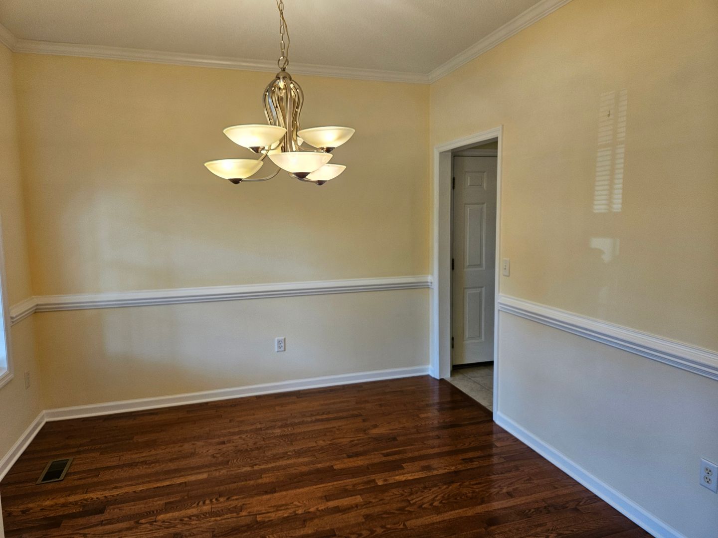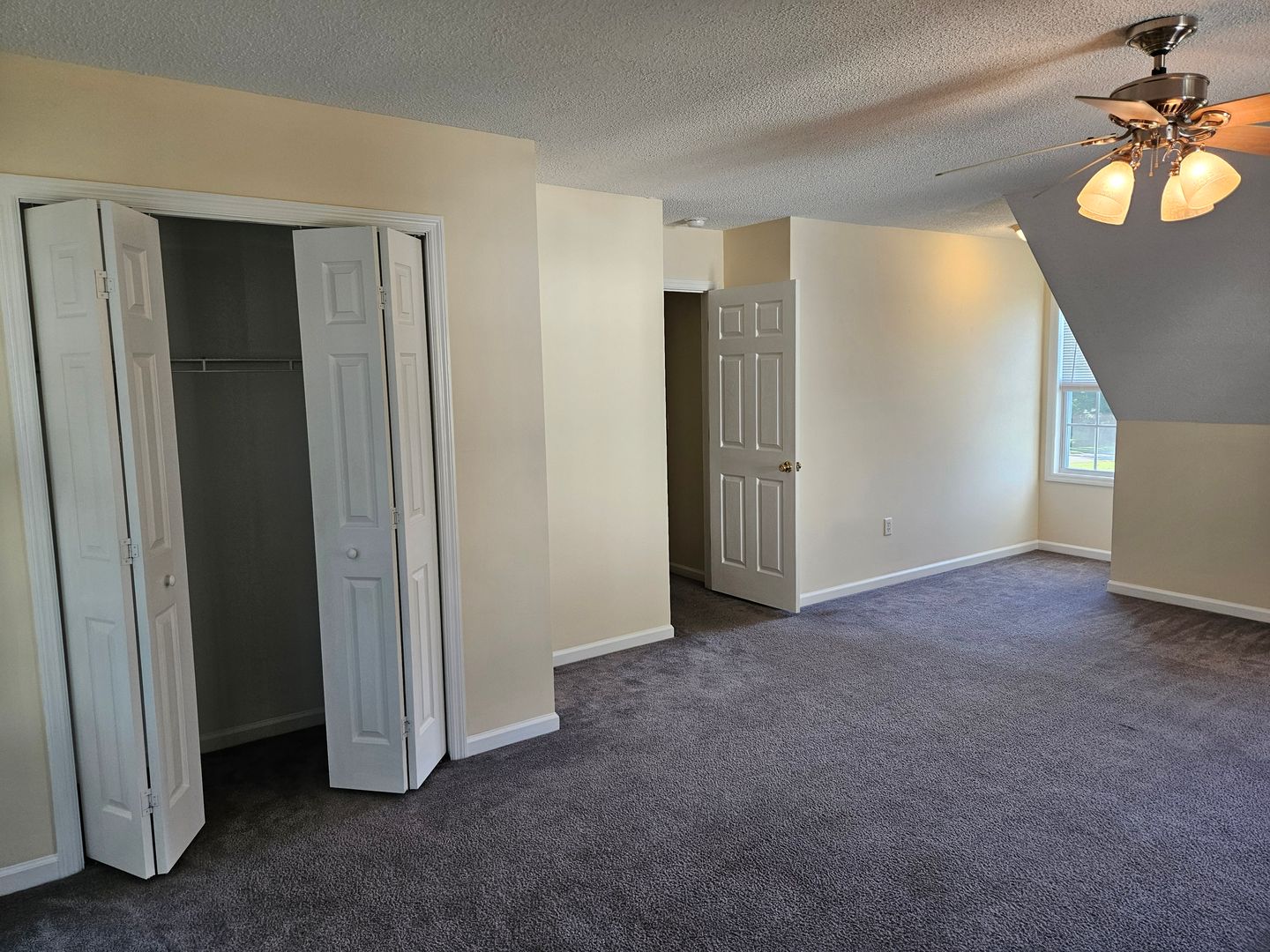 Beautiful unfurnished 4 bedroom, 2.5 bath home with 2 car garage located in the Creeks Edge Community. Newly painted interior. Floor plan has all bedrooms on the second floor along with a laundry room, hall bath and a large 3rd floor attic storage area as well. The downstairs living space is partially open to the kitchen with a spacious living room, kitchen, formal dining room and half bath. Access to the garage from the kitchen. The back yard is fenced in and has a small deck off the living room.