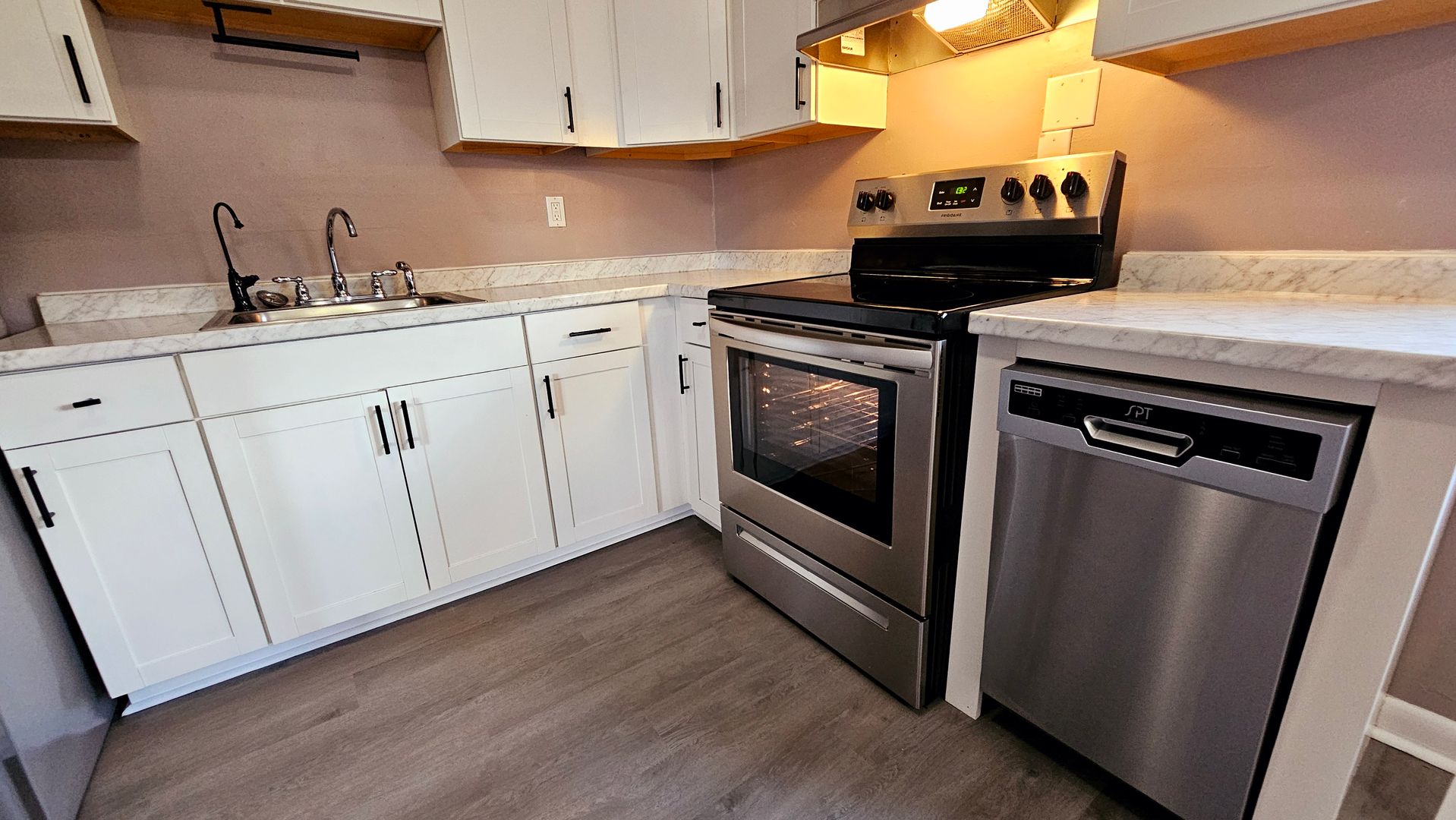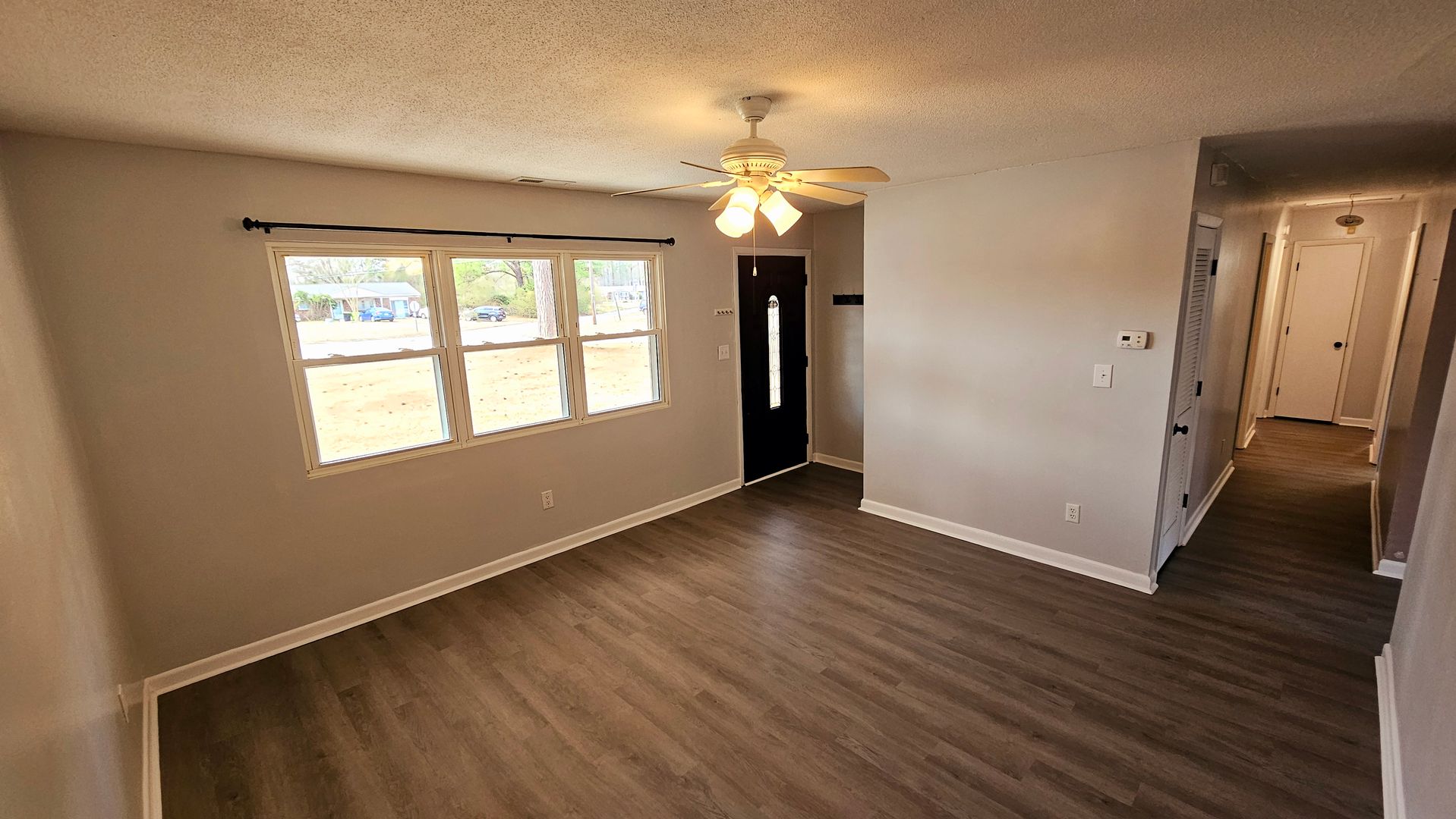 Welcome to 3 BD 2 BA in Shamrock Village! This charming home features a cozy fire pit perfect for outdoor gatherings, a convenient water softener, and modern appliances including an Electric Range, Dishwasher, and Refrigerator with ice maker. The house boasts a spacious Laundry Room, LVP Flooring and Carpet throughout, and a Covered Front Porch for relaxing evenings. The Pass through kitchen to dining room makes meal prep a breeze, while the Storage Shed and Converted Garage to bonus room provide ample space for storage or a home office. Plus, this pet-friendly property welcomes furry friends up to 60 pounds. Don't miss out on this lovely home in Jacksonville, NC! No Virtual tours. No smoking. Pet friendly 60 lb max with screening and non-refundable pet charge. Application charges apply.