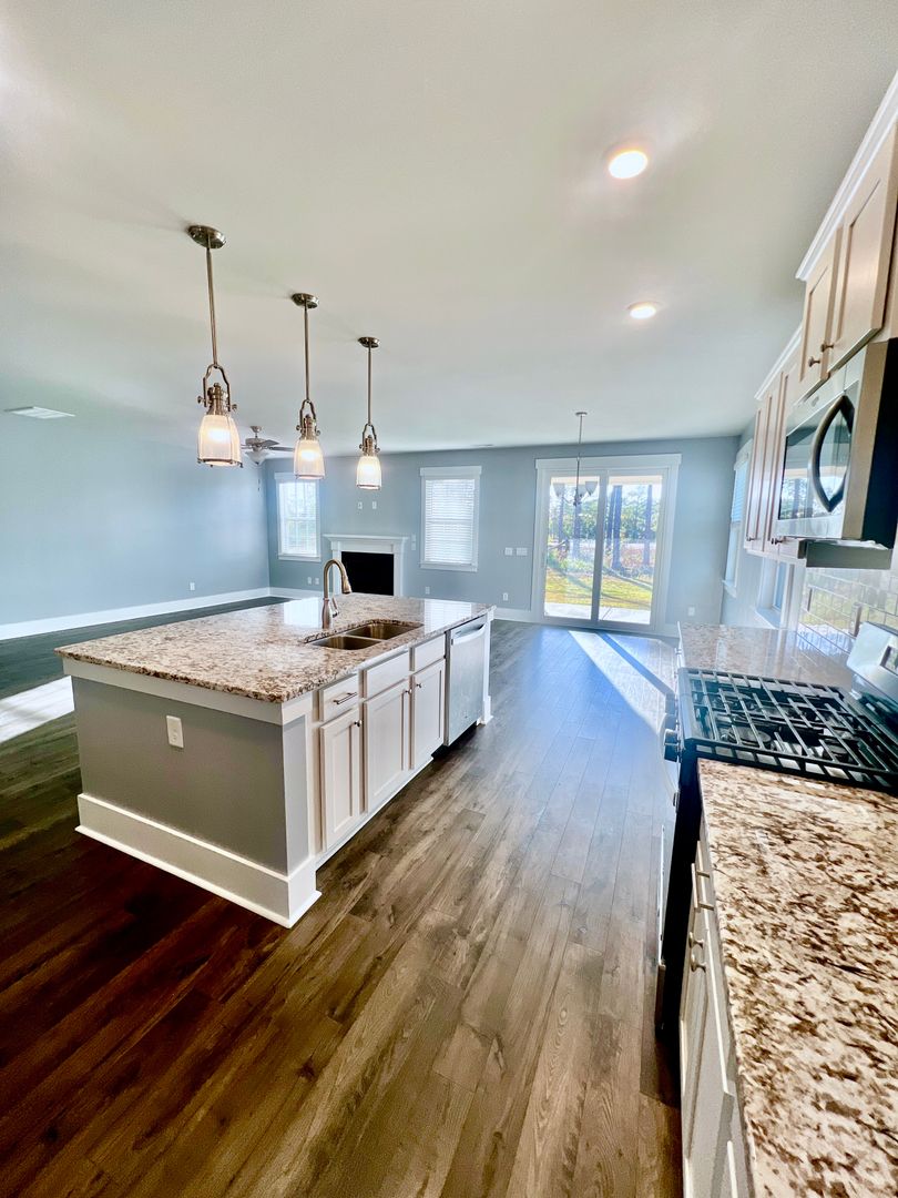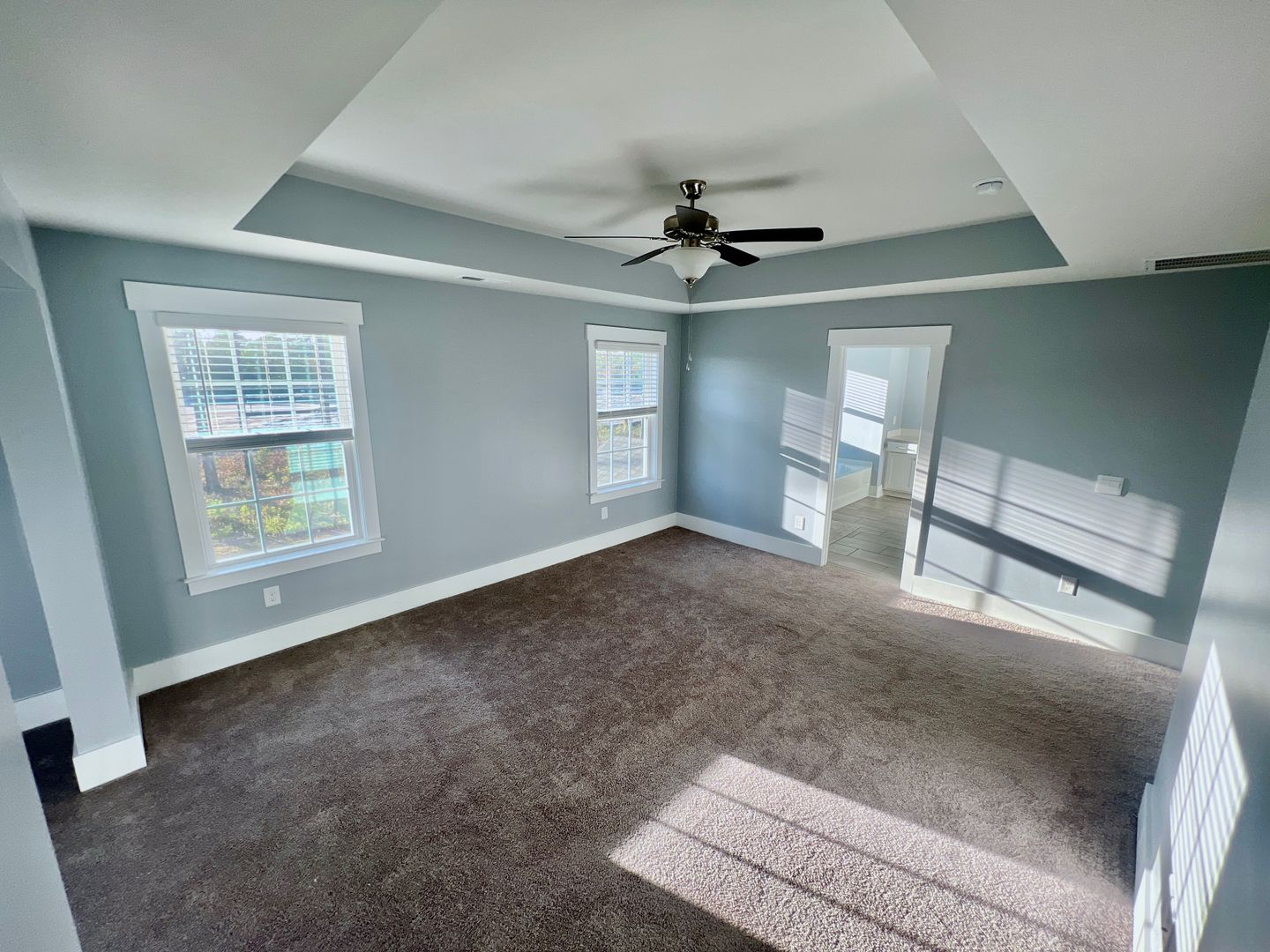 You'll love this prestigious 4 bedroom, 3 bath Harbor Oak home located in the newer Ballantine Grove subdivision. Covered front porch to greet your guests. Two Car Garage for your vehicles or extra storage. Foyer leading to the nice, open floor plan. Designer Kitchen featuring all stainless-steel appliances, granite countertops, tile backsplash, kitchen island with bar, walk-in pantry, and butler's pantry. Eat-in kitchen/breakfast area and large, formal dining room. Spacious living room featuring fireplace w/ gas logs. Downstairs guest bedroom/office. Upstairs you'll find the family room/den at the top of the stairs. Master Suite features a large sitting area, huge walk-in closet, and master bath w/ soaking tub, walk-in shower, and dual vanities. Two additional bedrooms upstairs, one with access to the upstairs covered balcony. Upstairs laundry room for convenience. Downstairs mudroom leading to the two-car garage and backyard featuring covered patio overlooking the backyard. Pet friendly with pet screening and non refundable pet charge 1 small/medium pet under 40 lbs. No Virtual Tours Allowed. No Smoking. Application charge applies.