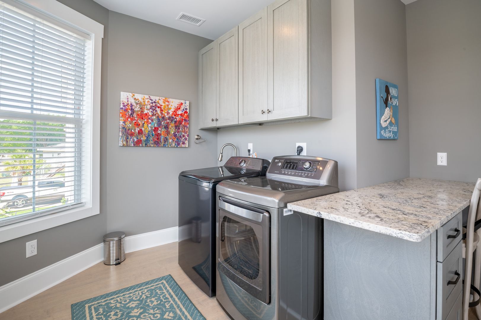 The living space begins on the second level with ocean side and canal side covered decks. The minute you step into the foyer, wow! A huge walk in laundry room. This space also makes for a wonderful office!