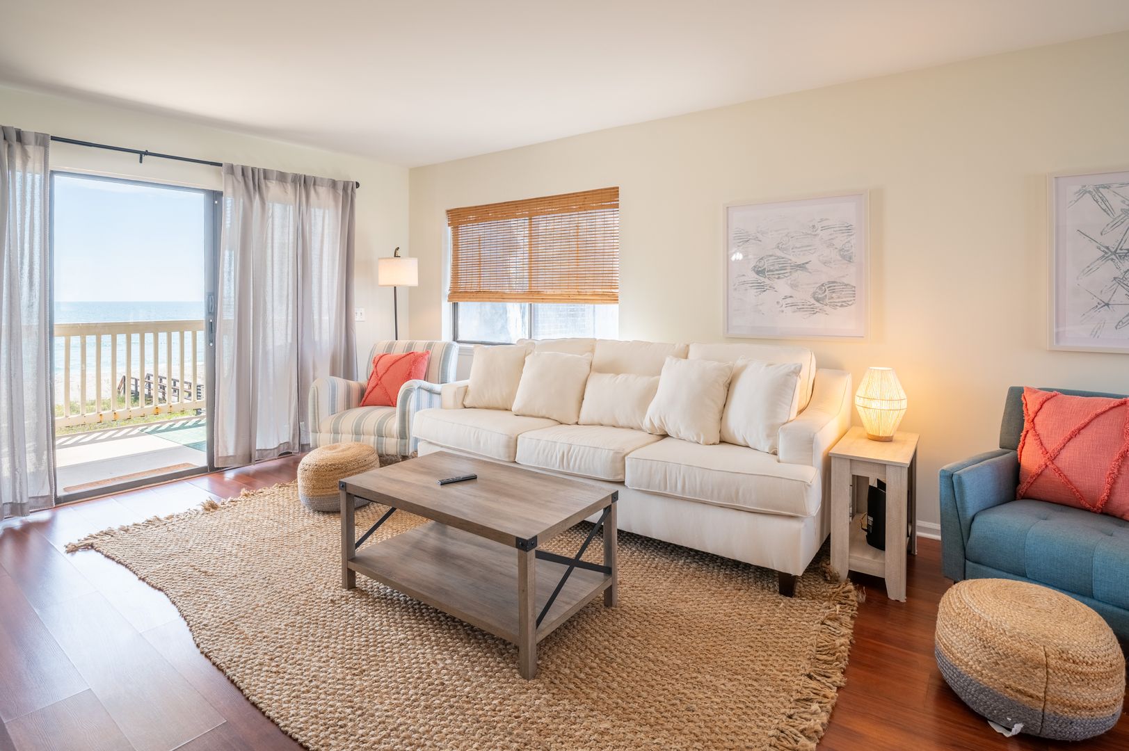 Relax in casual comfort with bright, fresh, clean new furnishings and the best oceanfront location on Carolina Beach.