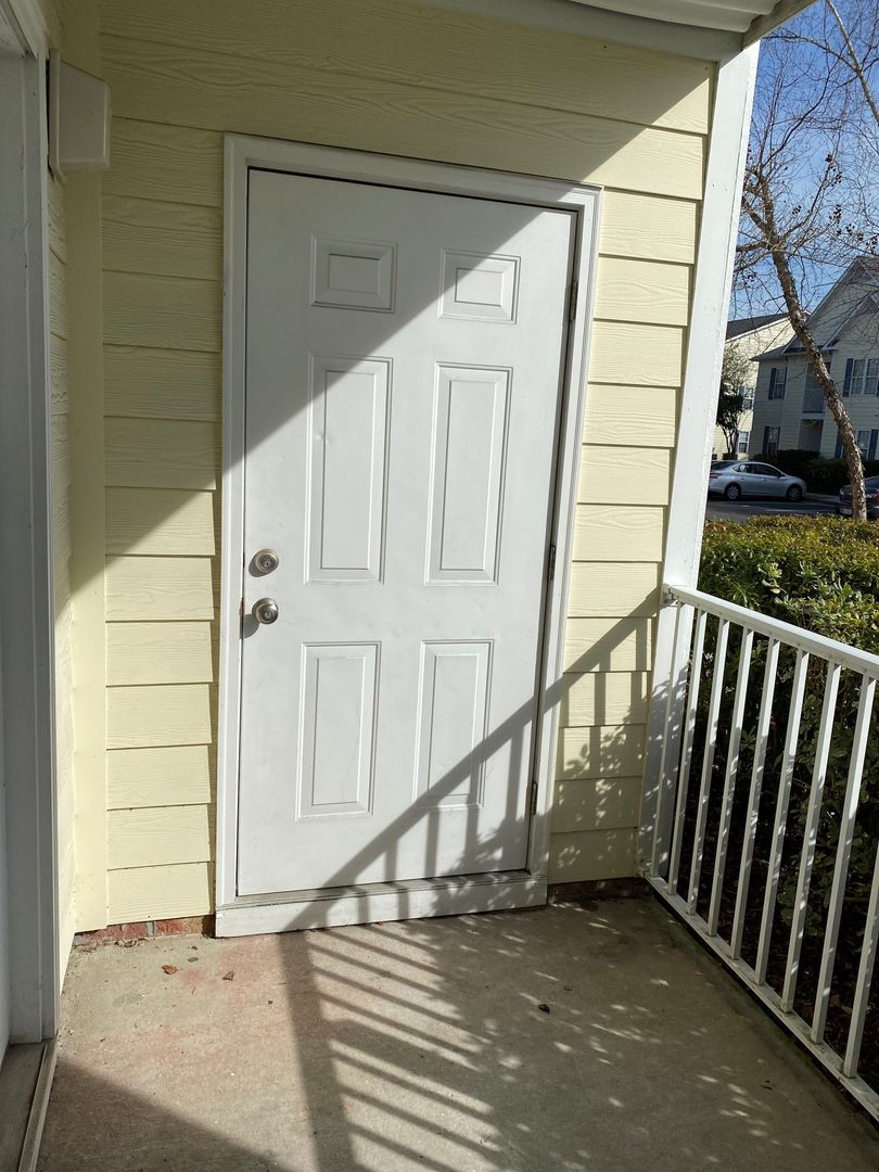 This well maintained 3 bedroom 2 bathroom ground level condo tucked away in Hunters Crossing . This home has a split floor plan and extra storage space . Enjoy morning coffee on the welcoming covered patio area , which leads into the spacious living room with a electric fireplace. This neighborhood offers a community pool and assigned parking spaces with additional guest parking . Conveniently located to dining , shopping , Historic downtown Wilmington .