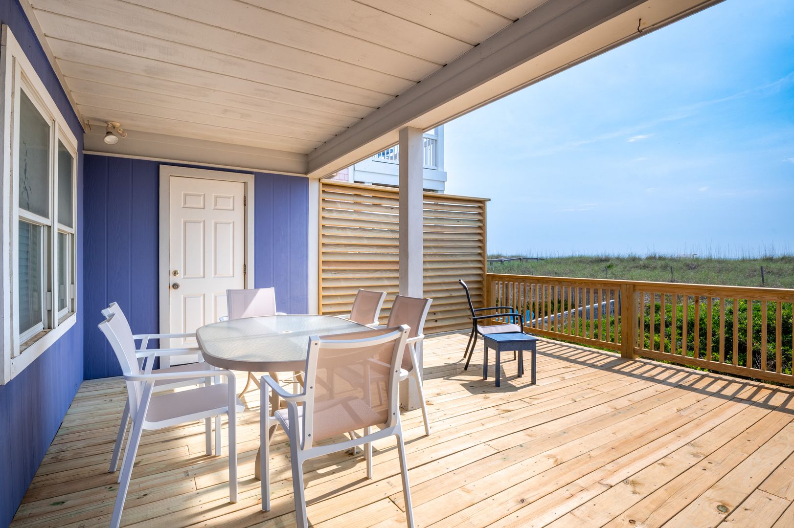 * Relaxing covered porch with rocking chairs and ocean views