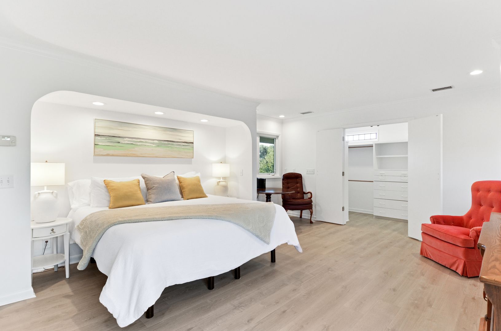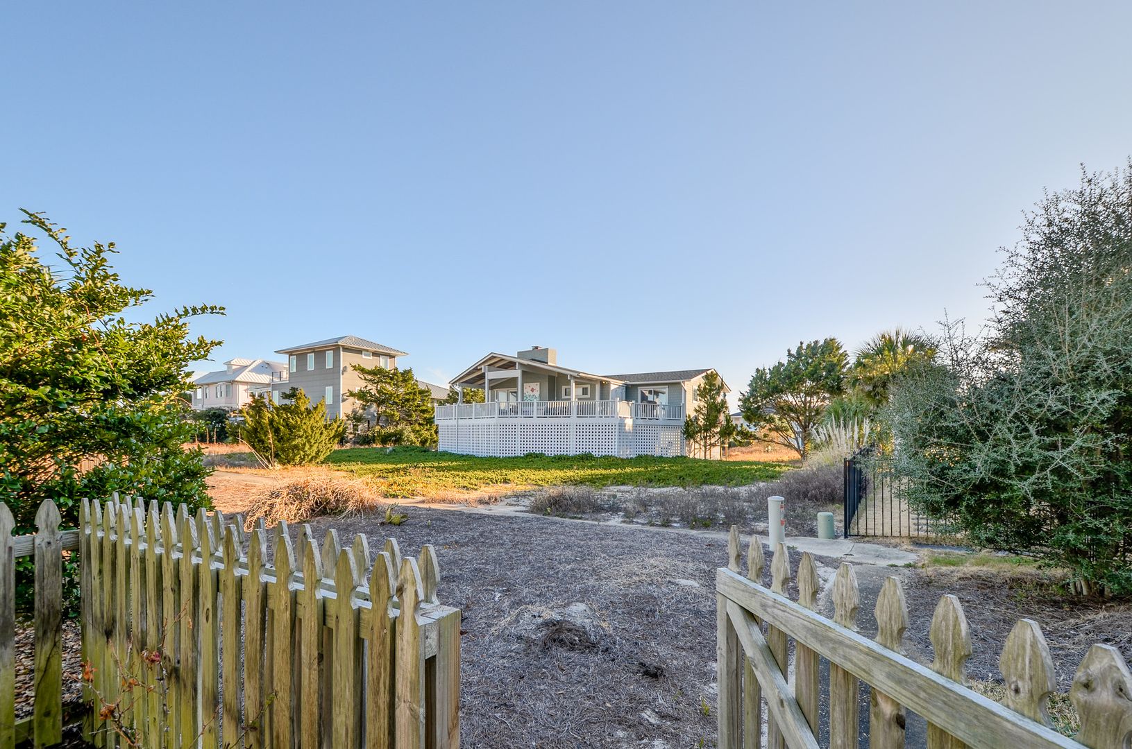 Private beach access path, large yard, with a double garage.