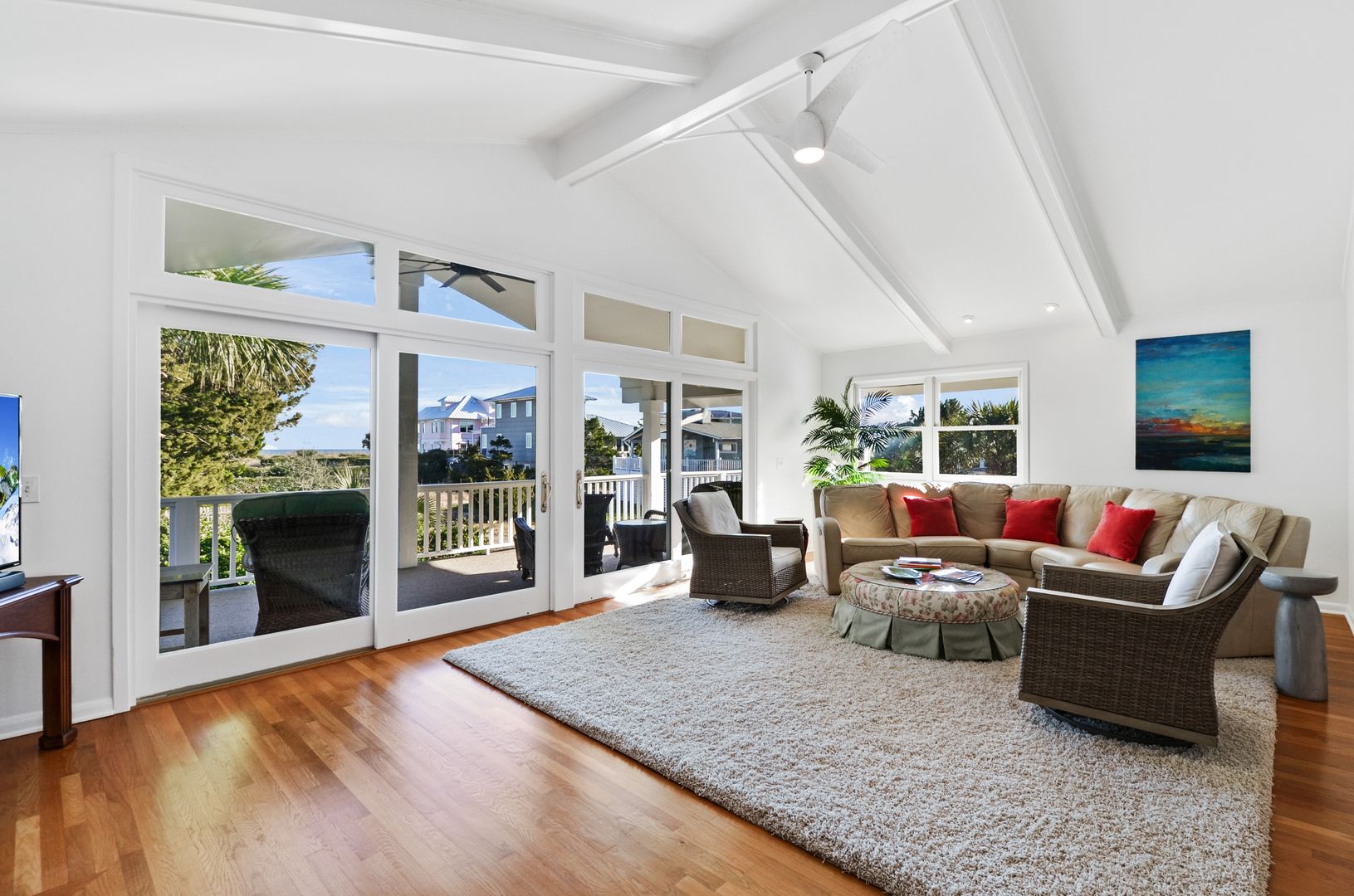 This stunning home sits just steps from the sand, with unobstructed ocean views, salty breezes, and numerous outdoor living spaces. From morning coffee on the porch to golden hour on the deck, this place is all about coastal living.