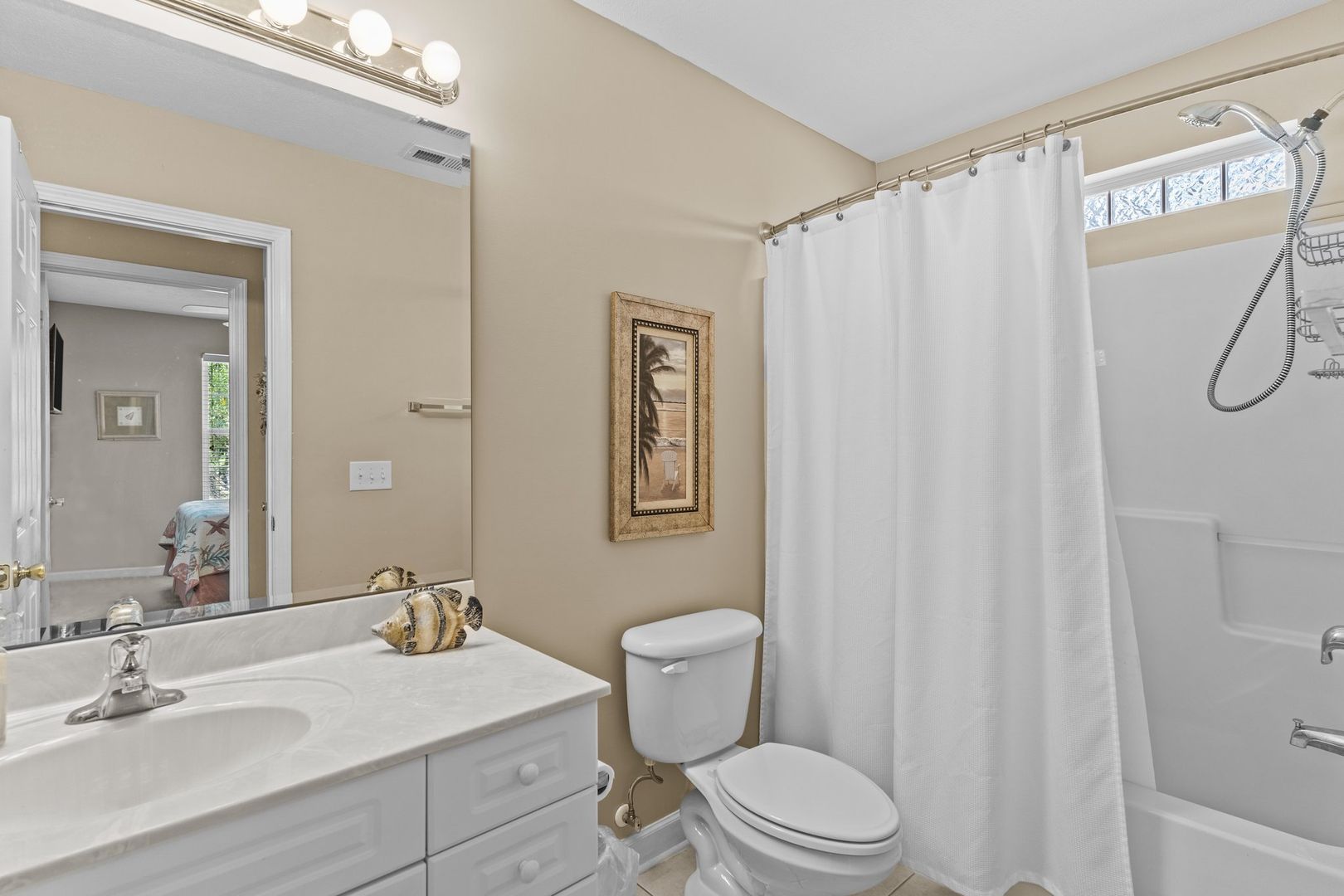 Lush landscaping and a wonderful backyard make this a private coastal retreat. Roast s'mores in an outdoor fire, walk your furry friend down the friendly street, or cozy up inside our open living space. With an oversized primary bedroom suite and two large, comfy bedrooms sharing their bath, you will have plenty of sleep time privacy. One-story living with only a few steps to the front porch, Shoal Sisters is perfect for travelers who need to avoid stairs.