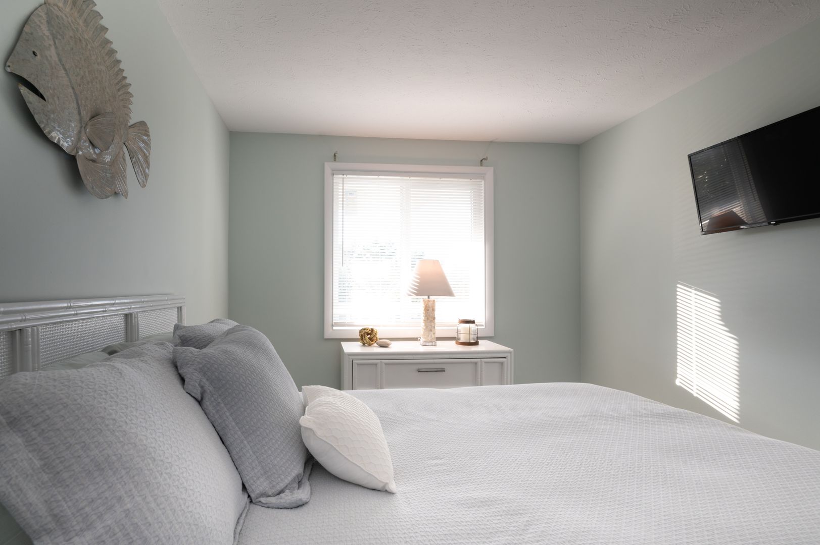 The primary bedroom suite has a king size bed for your comfort, Smart TV, Ensuite bathroom with a shower/tub combo and a private access to the deck for a late night peek at the sky or an early morning sunrise.