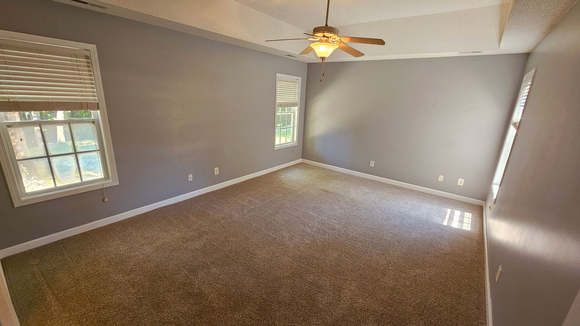 Welcome to the 3 BR 2 BA Aragona Village, a charming residence located in the vibrant city of Jacksonville, NC. This home boasts three spacious bedrooms and two full bathrooms, offering ample space for comfort and relaxation. The galley kitchen, equipped with a generous amount of counter space and a handy pantry, is perfect for culinary enthusiasts. The living room, featuring vaulted ceilings, provides an open and airy atmosphere that is sure to impress. The split floor plan ensures privacy and convenience, while the en suite with a garden tub adds a touch of luxury. The tray ceiling is another unique feature that adds to the overall elegance of this home. Experience the perfect blend of style and functionality in the 3 BR 2 BA Aragona Village. Lawn mower is remaining on site for tenant use. Fireplace is not usable. Owner prefers no pet, but may be negotiable. No Smoking. No virtual tours. Application charge applies. If owner approves a pet, pet screening is required with a non-refundable charge applying.