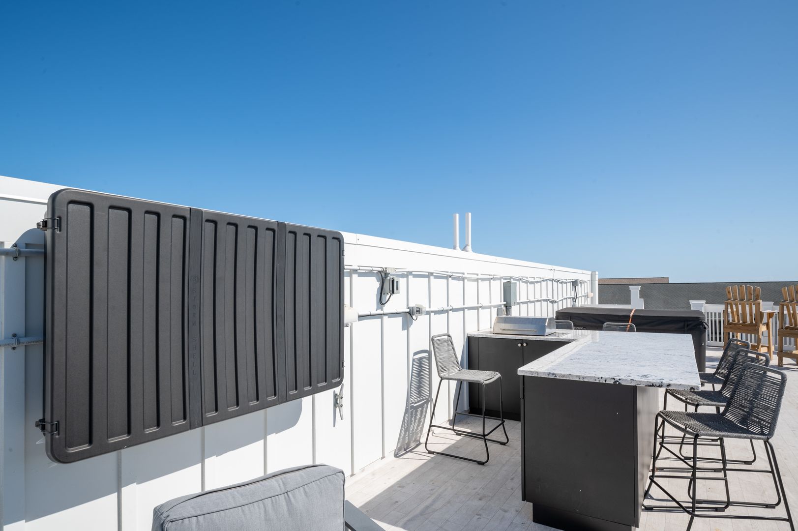 This enormous family Carolina Beach rental has 3 king suites in addition to two bunkrooms, and is arranged in a logical fashion for either interior stair access, exterior stair access, or elevator access to all interior levels. There are interior luxury living, dining, and cooking spaces on two different levels of the home.
