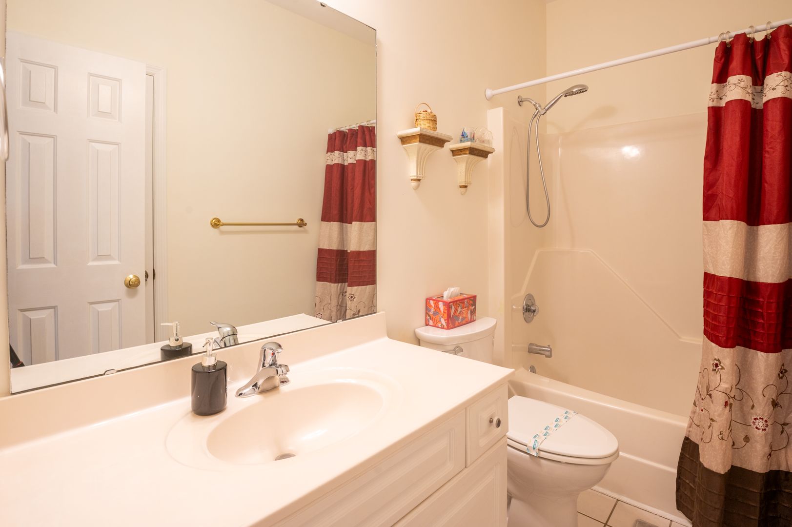 Two comfortable bedrooms on one side of the house share a bathroom, perfect for the kids and/or visiting family. A generous, private master suite located on the other side of the house with a queen size bed, a gorgeous bathroom complete with a garden tub.