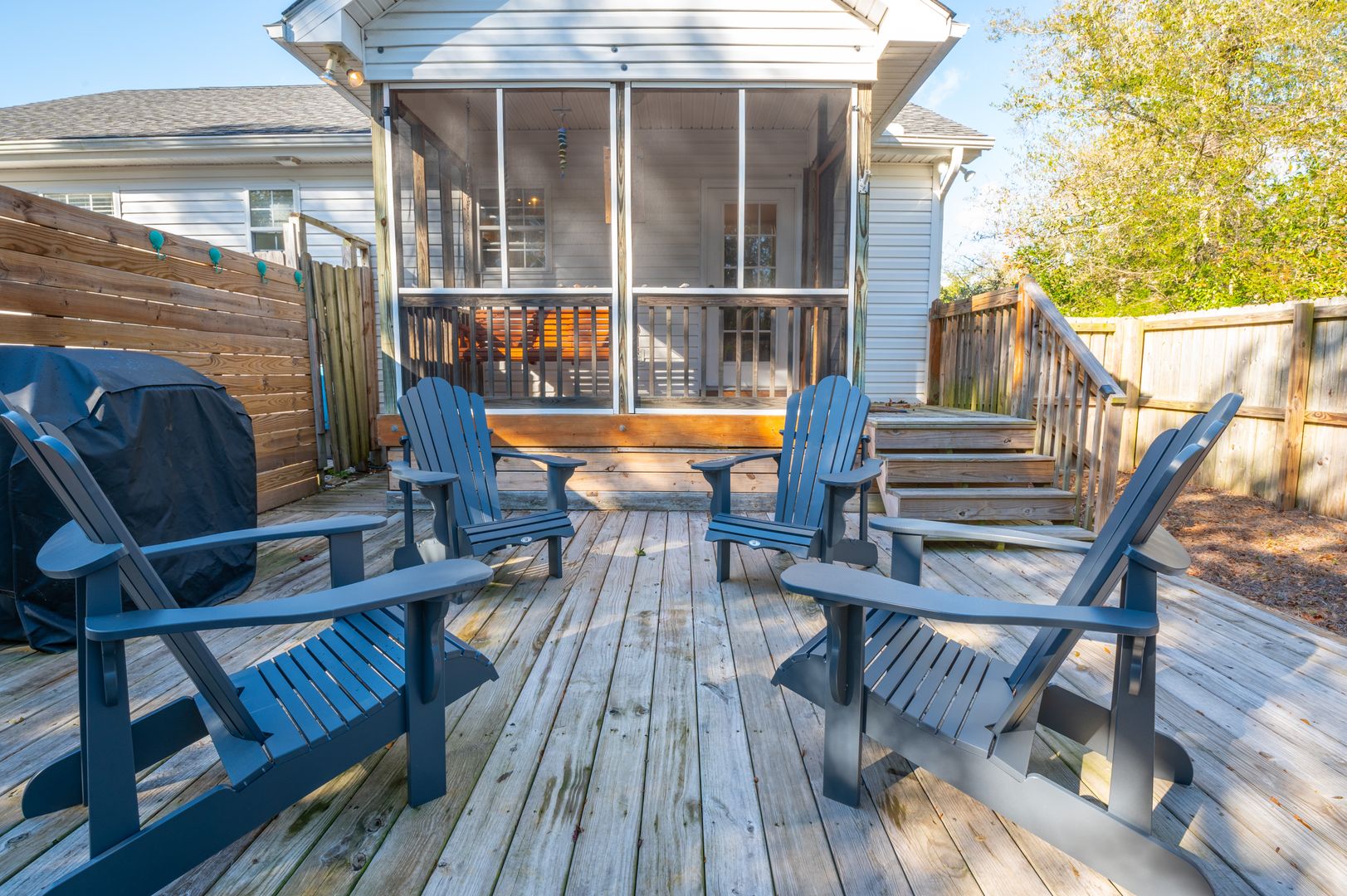 Outdoor living is at its best at The Feighery Tail: with a firepit seating area in the front, and a shaded HOT TUB patio in the back yard, complete with a generous cushioned outdoor living room. Our charming Oak Island cottage is a .7 mile stroll to the beach down a sleepy lane. (Or a three minute drive.) Swim, surf, and sun yourself and then walk to Grocery stores, Barbecue, Ice Cream, and Putt Putt, all close by. If you prefer to fish the marshes or run out to the inlet from the ICW, boats and trailers are no problem and there is ample parking. The public boat ramp is super close! Screened-in porches, a hot water outdoor shower, and a gas grill make this the perfect island vacation house year-round.