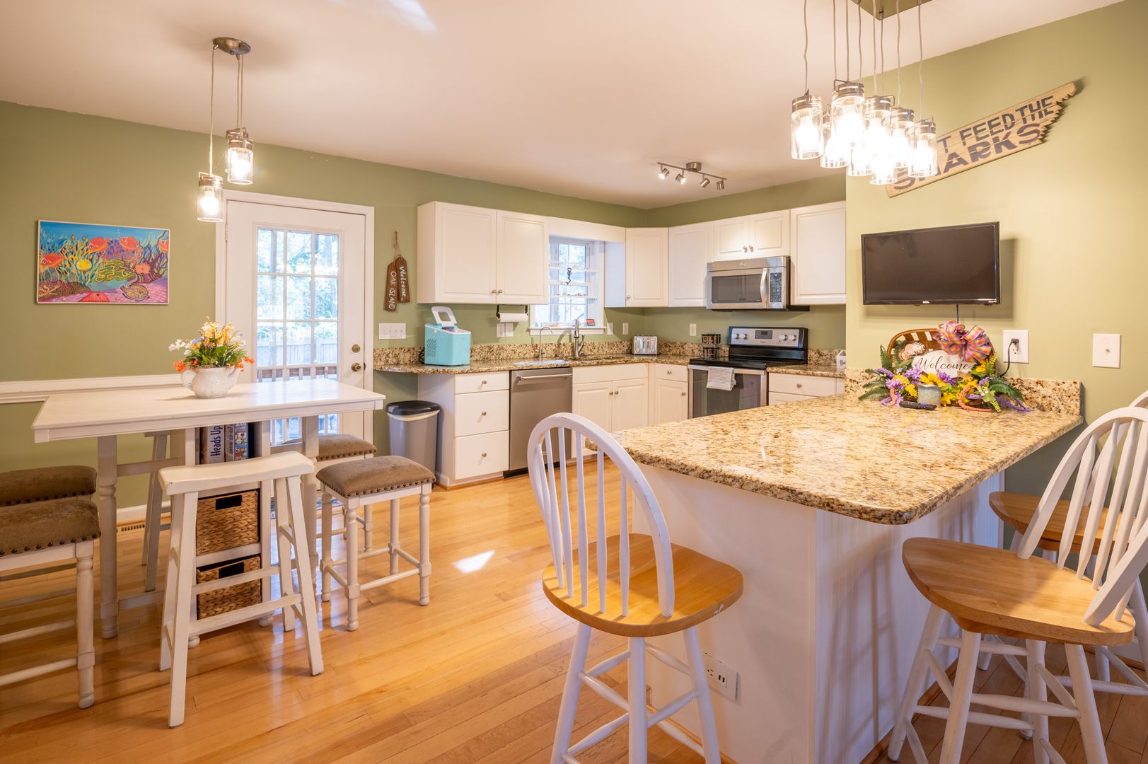 Our street is a straight walk through to the beach access. Nearby Middleton Park provides food trucks and a cabana with showers/ restrooms. You will have easy access to the splash pad, skate park, and baseball fields if you need a diversion from the sand for a while. And don’t miss stopping for a Dole Whip from a nearby food truck. Our home is an easy visit to grocery shopping, dining, and bar spots, as well as various ice cream, coffee, and donut options.