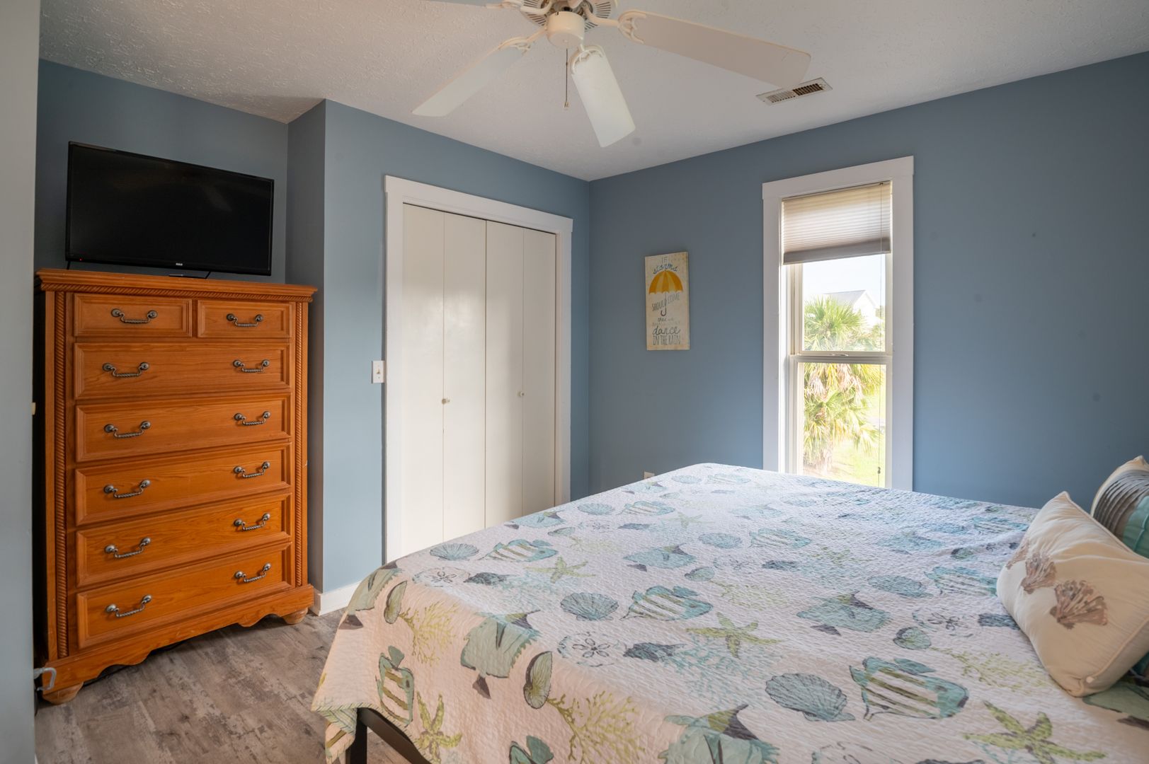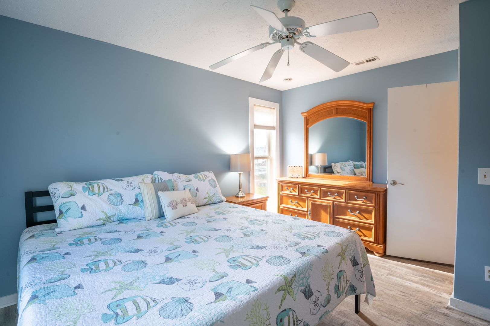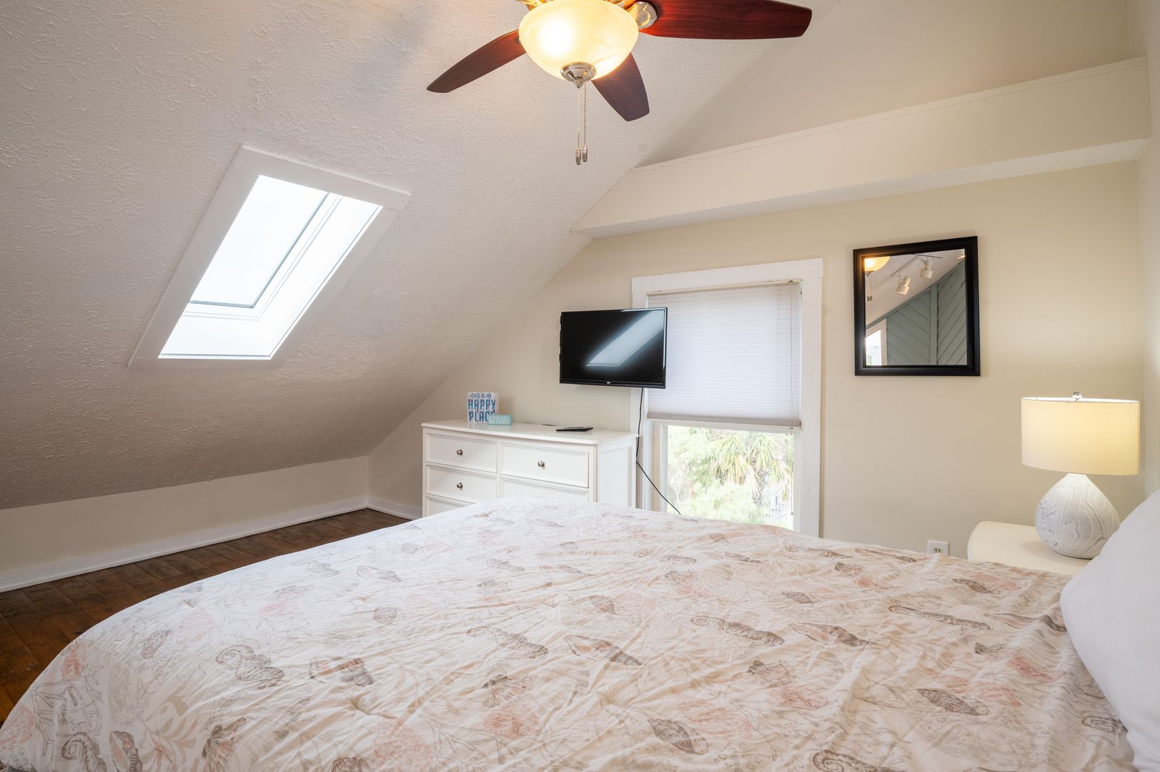 The master suite is spacious with a 4-poster king-size bed and a double-wide closet for your convenience. Your second bedroom has a queen-size bed, while the loft bedroom offers additional space for guests (also a queen).