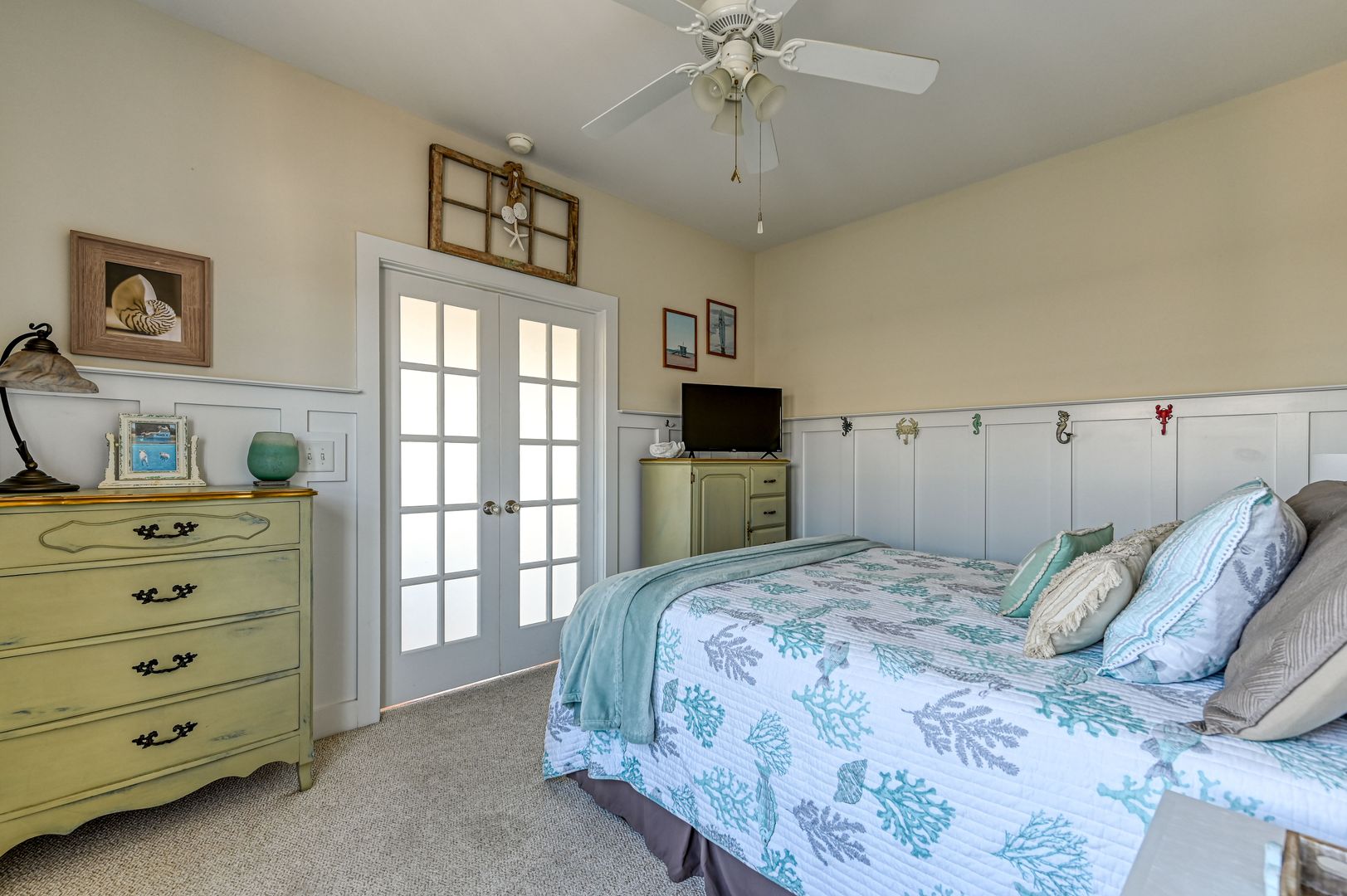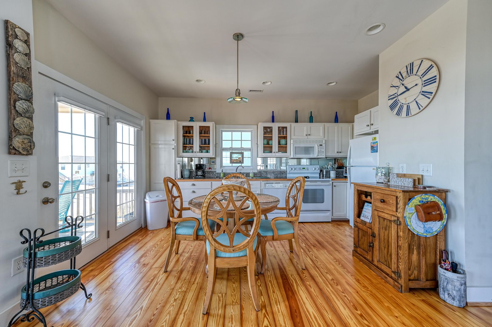 Lovingly updated and maintained over the years. A homey interior featuring warm pine flooring, antiques, tons of natural light, and thoughtful built-ins will keep you snug and cozy in your beach house when you are done frolicking in the waves for the day. A bonus to this North Topsail beach rental is the farmer’s market fruit and veggie stand just around the corner, an easy walk for fresh produce and daily treats from local farmers. Even though this cottage has an enduring vintage touch to it, you will find modern multi-device charging pads and Wi-Fi throughout.