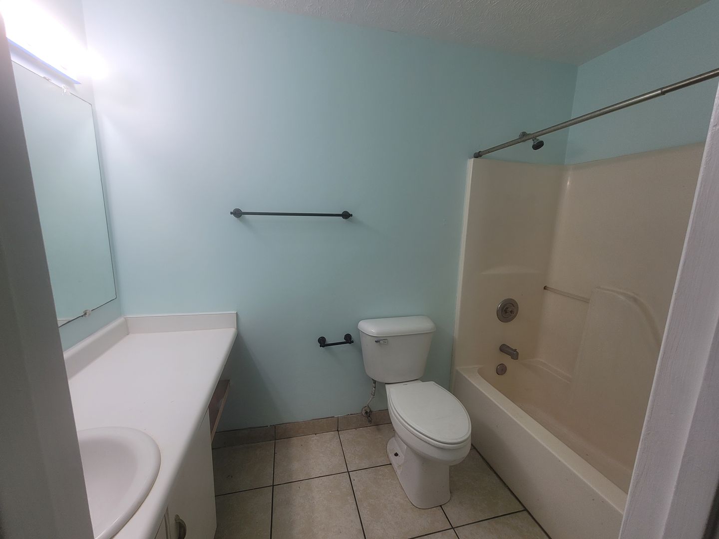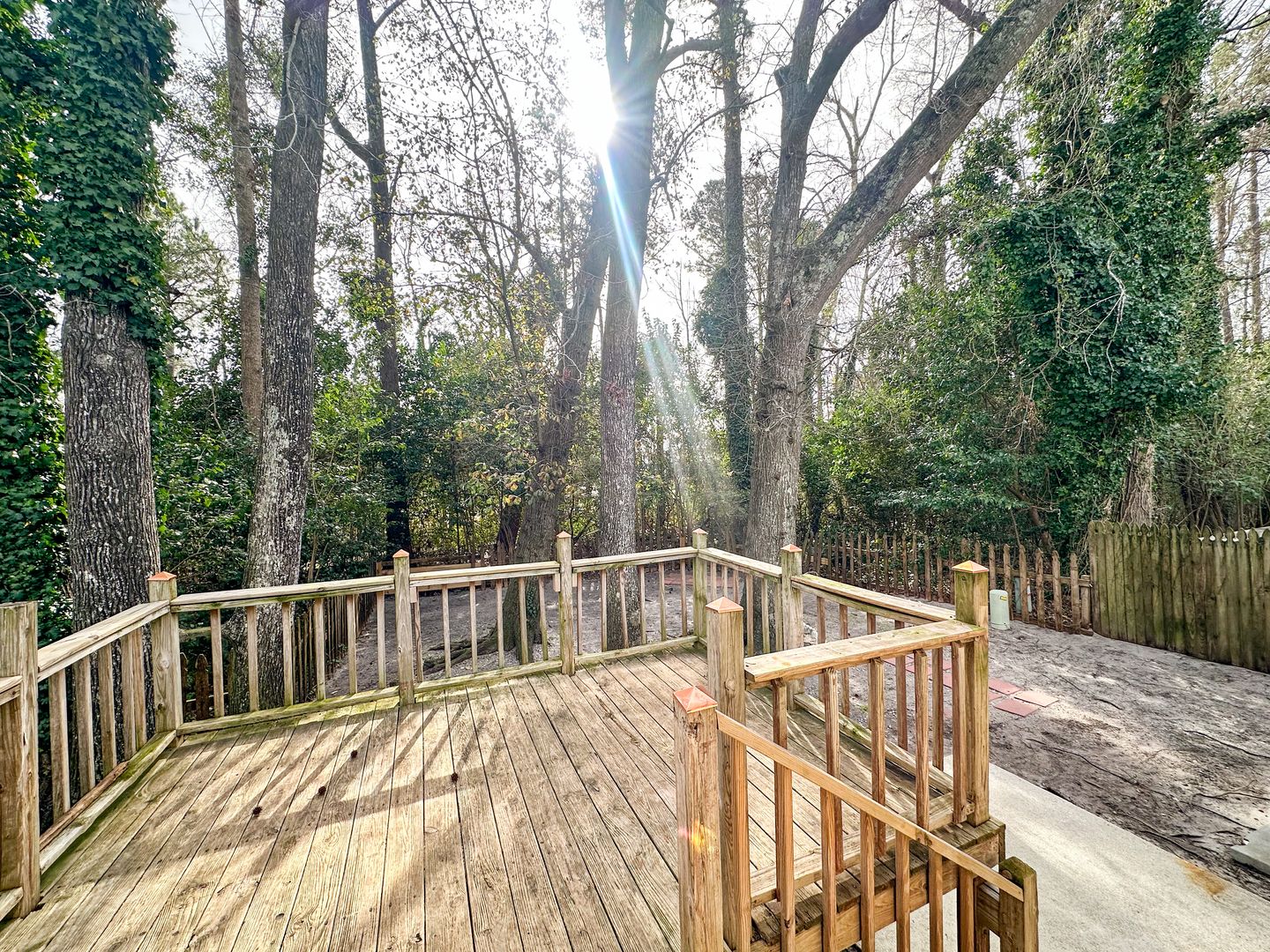 Centrally located 3 bedroom 2 bath single family home close to shopping , UNCW and beaches . The bathrooms , kitchen and dining room are ceramic tile floor with vinly flooring throughout the rest . Washer and dryer are included .Enjoy the outdoors on the large backyard deck .