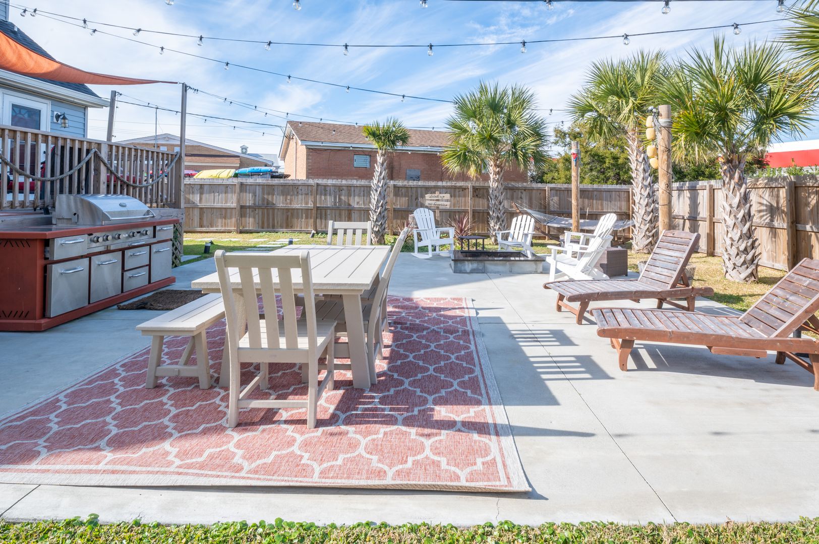 A much-needed escape for the whole family; this pirate-themed 2 story home is minutes from the best that Carolina Beach has to offer. Enjoy your beach vacation with a charming twist, each room has a unique vibe and theme to take your vacation from ordinary to extraordinary. The large backyard is a buried treasure: A completely fenced-in yard that boasts a natural wood fire pit, grill island, outdoor dining areas, outdoor shower, string lights, and palm trees all around your retreat. A multi-level deck & patio make outdoor living a delight. We invite you to stay and make Pirates Retreat your home away from home.