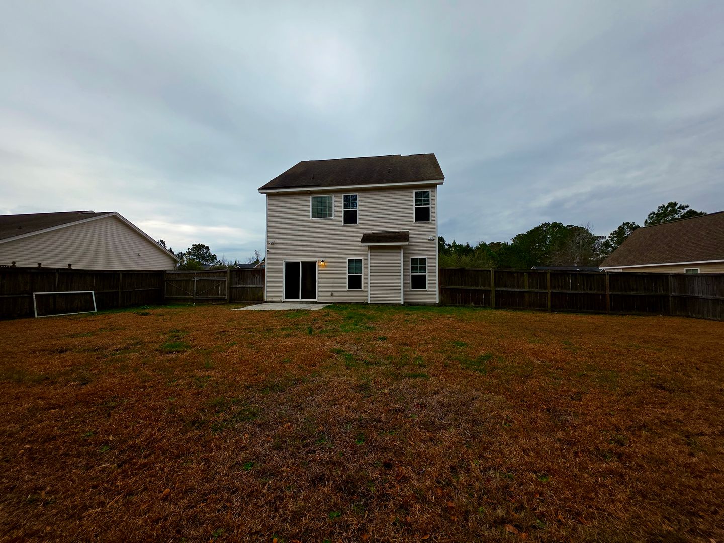 Welcome to this stunning 3-bedroom, 2.5-bathroom home located in the vibrant city of Jacksonville, NC. This property boasts a spacious layout with a large fenced backyard, perfect for outdoor activities or simply enjoying the North Carolina weather. The home features a covered patio, ideal for entertaining or relaxing. Inside, you'll find a laundry room with washer/dryer hookups for your convenience, and a pantry for extra storage. The kitchen is designed with bar-style seating, perfect for casual dining. The master bedroom is a true retreat with not one, but two walk-in closets, providing ample space for your belongings. The home also includes a 2-car garage, a welcoming foyer, and a beautiful tray ceiling, adding a touch of elegance. The wooden fence in the backyard adds an extra layer of privacy. This home is a perfect blend of comfort and style. No Virtual Showing. No Smoking.
