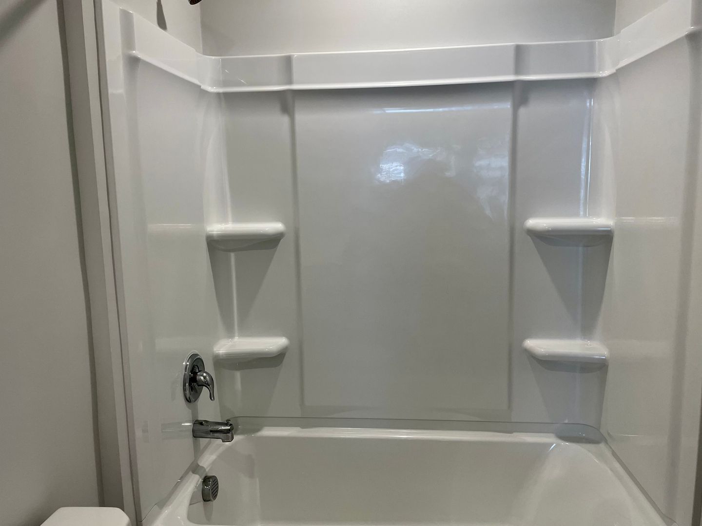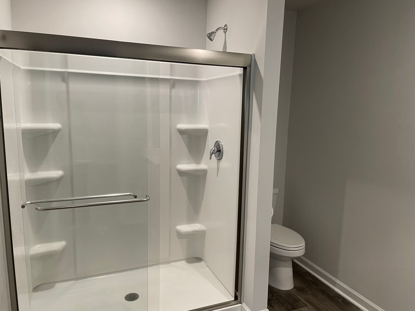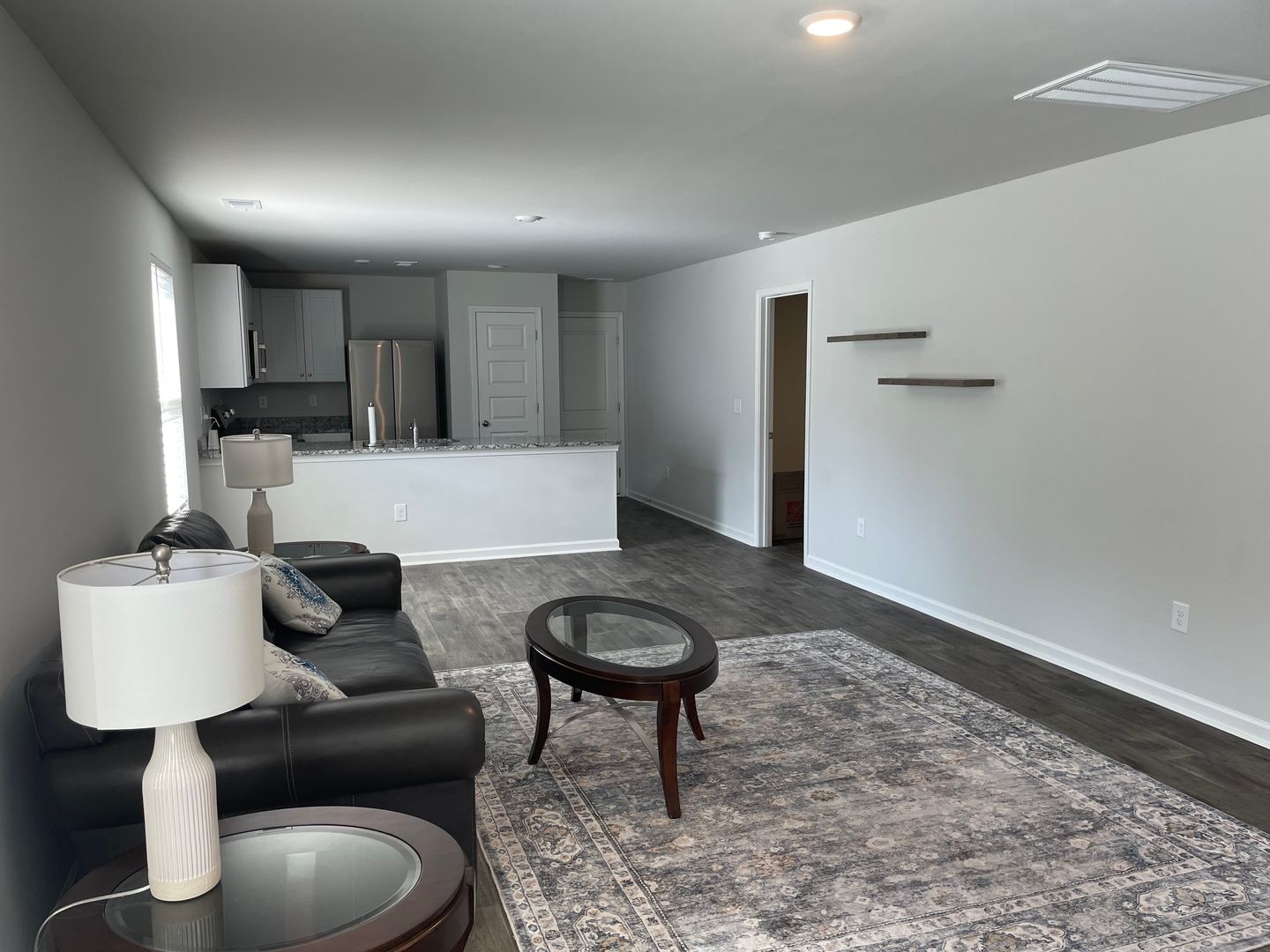 The modern kitchen comes fully equipped with a refrigerator, stove/oven, microwave, and dishwasher. A washer and dryer are also included, ensuring move-in readiness from day one.
