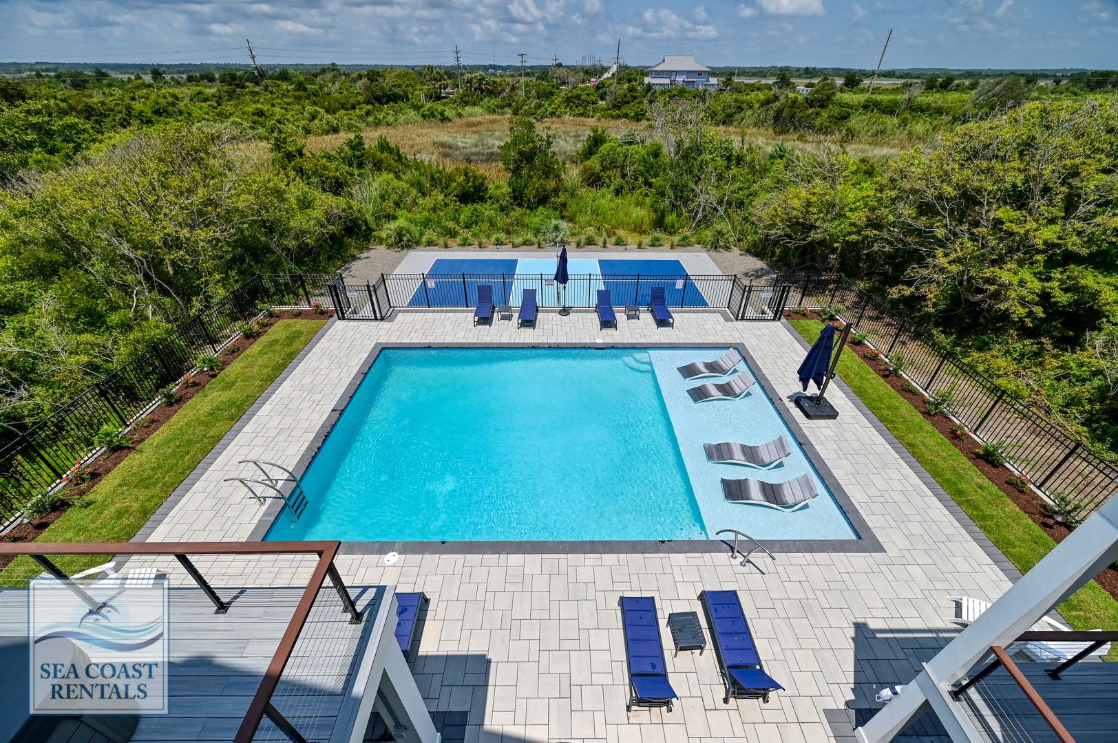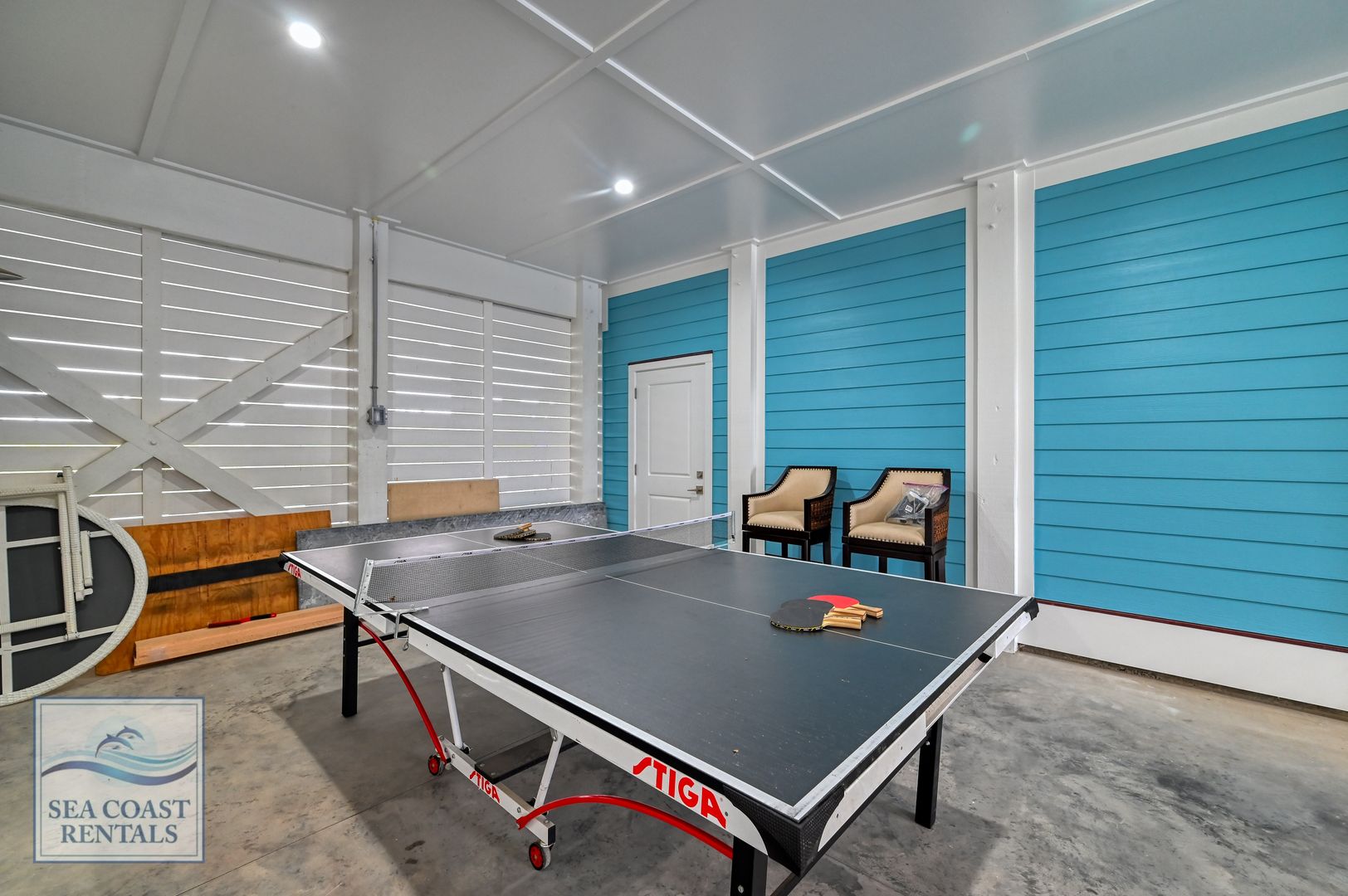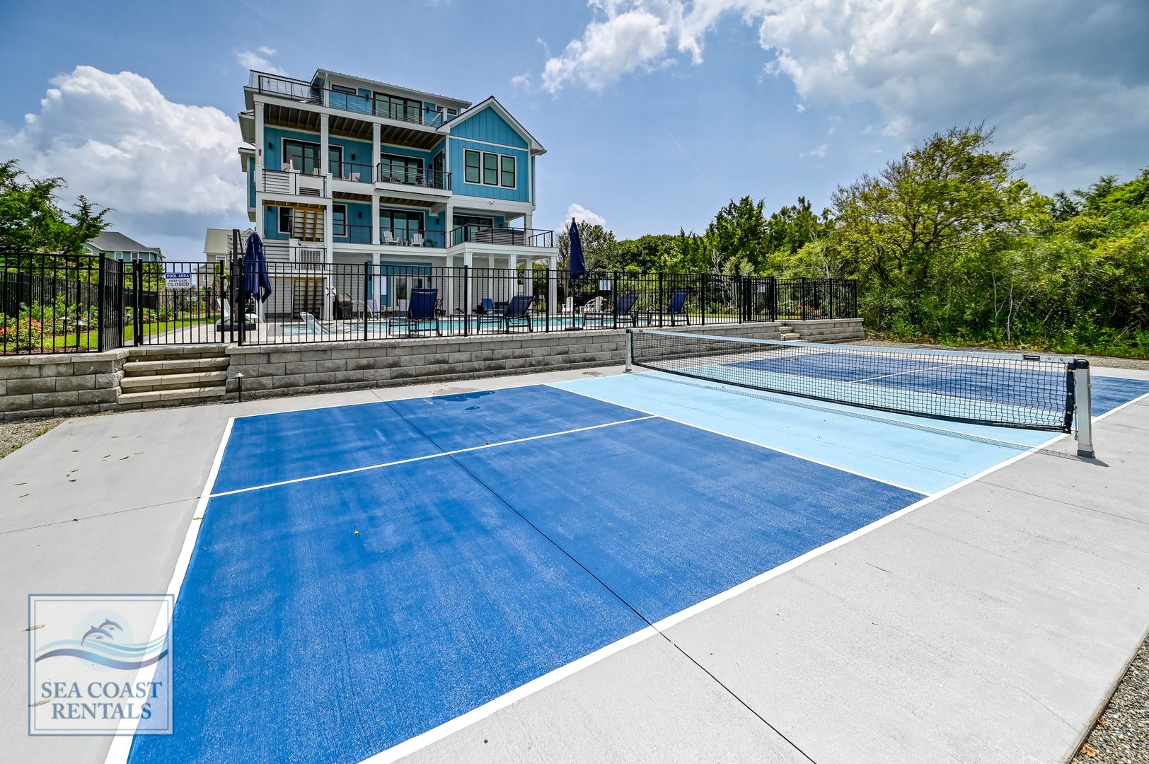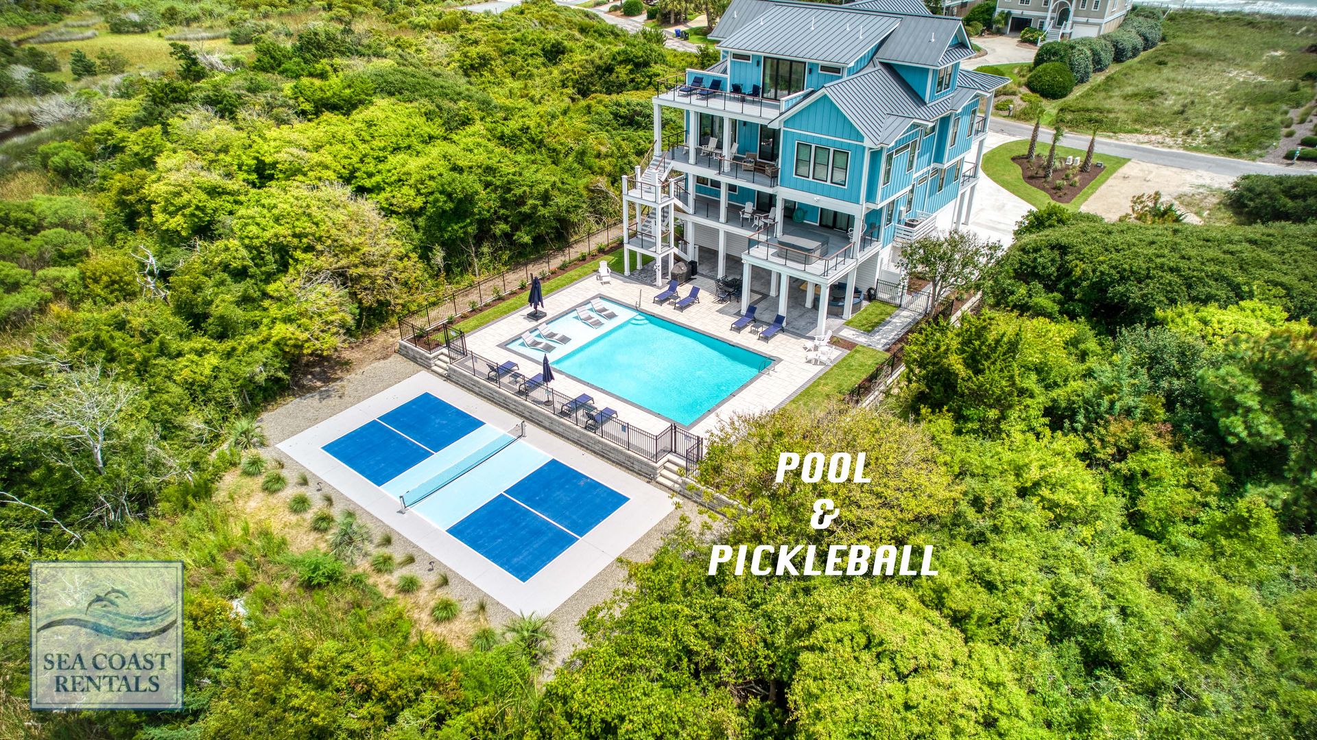 We haven’t even mentioned all the fun you can have both inside and out! Aside from the beautiful beach and ocean, you never have to leave the house to enjoy a fun filled day. There is a 40-foot by 25-foot private pool with a 10-foot tanning deck, a regulation sized Pickleball court, outdoor BBQ grill with prep area, covered outdoor living space with a TV and an outdoor shower. If you prefer to be inside, then you can enjoy the game lounge with an 85-inch smart TV, foosball table, coffee bar, beverage fridge and ice maker that are still steps from the pool.
