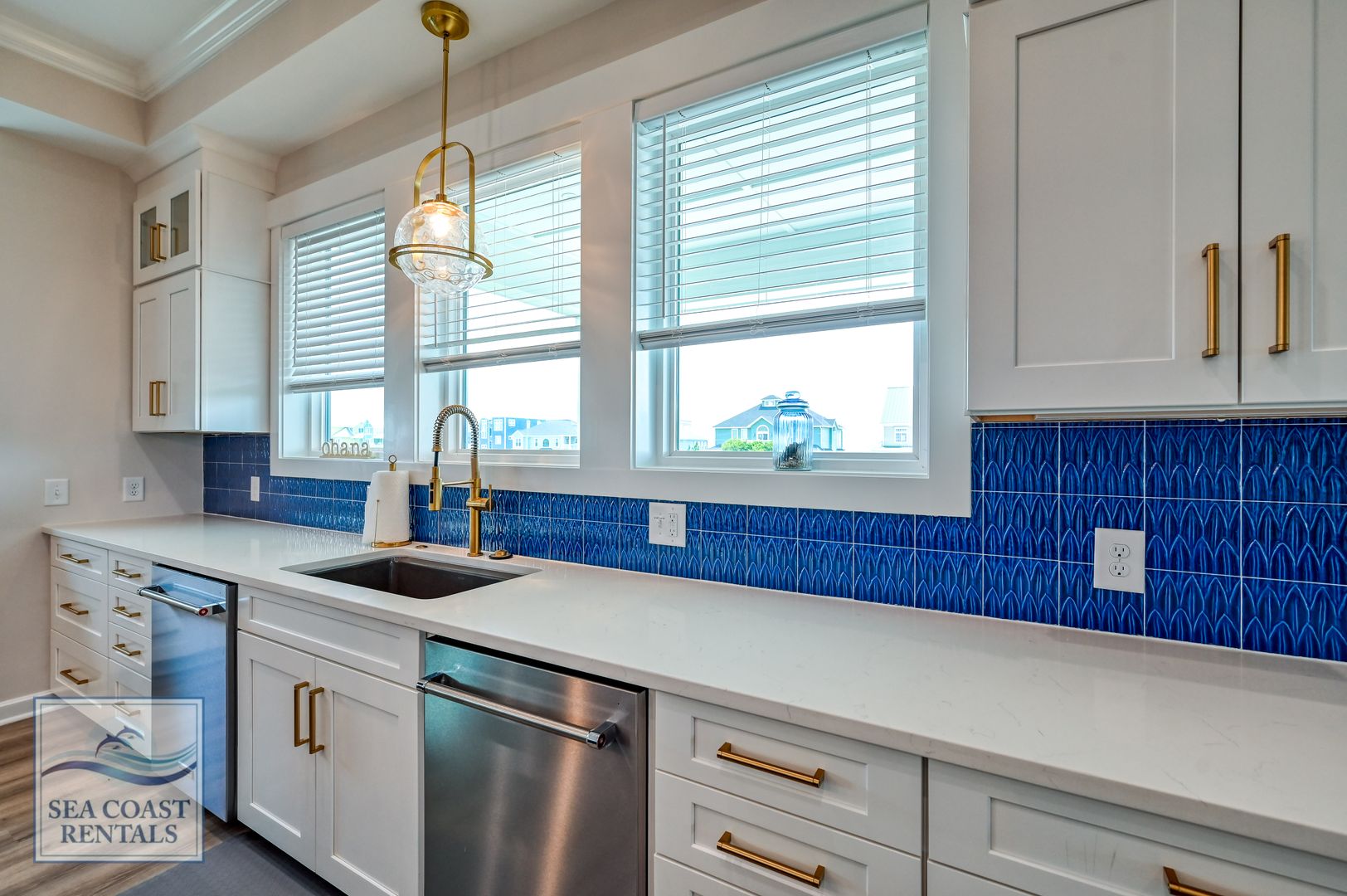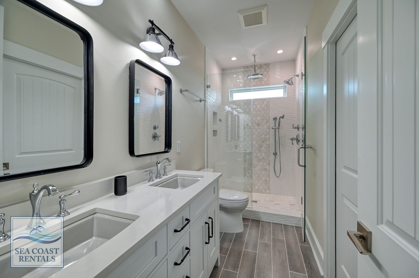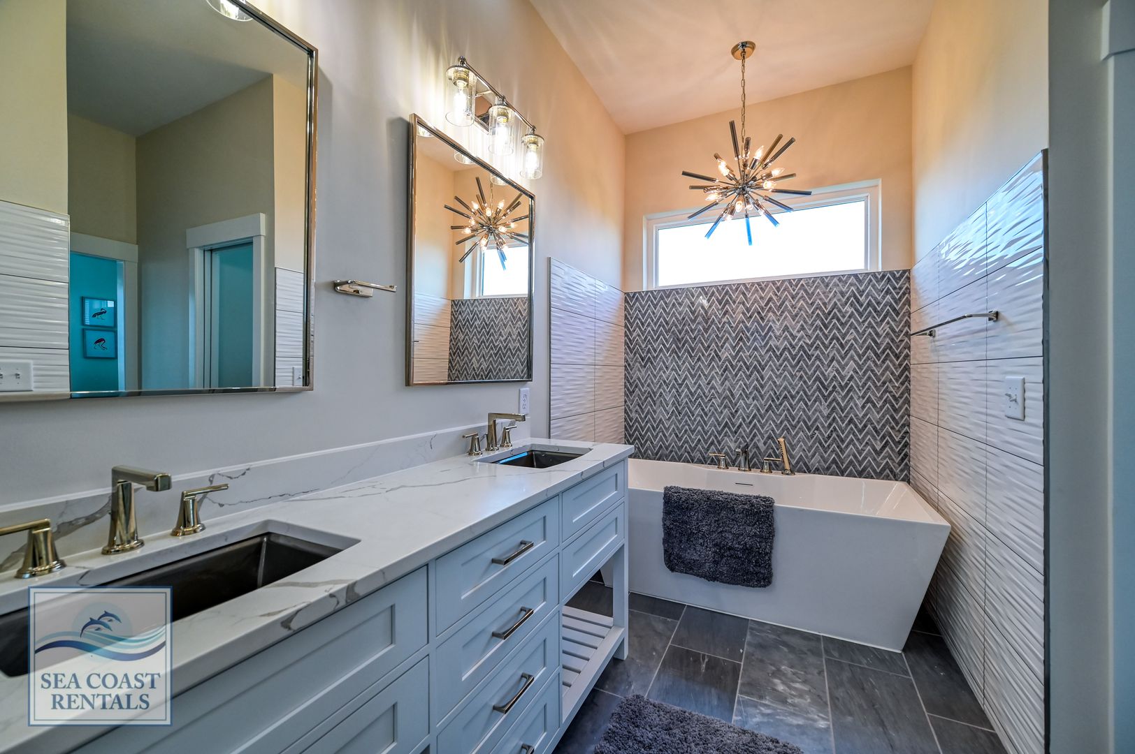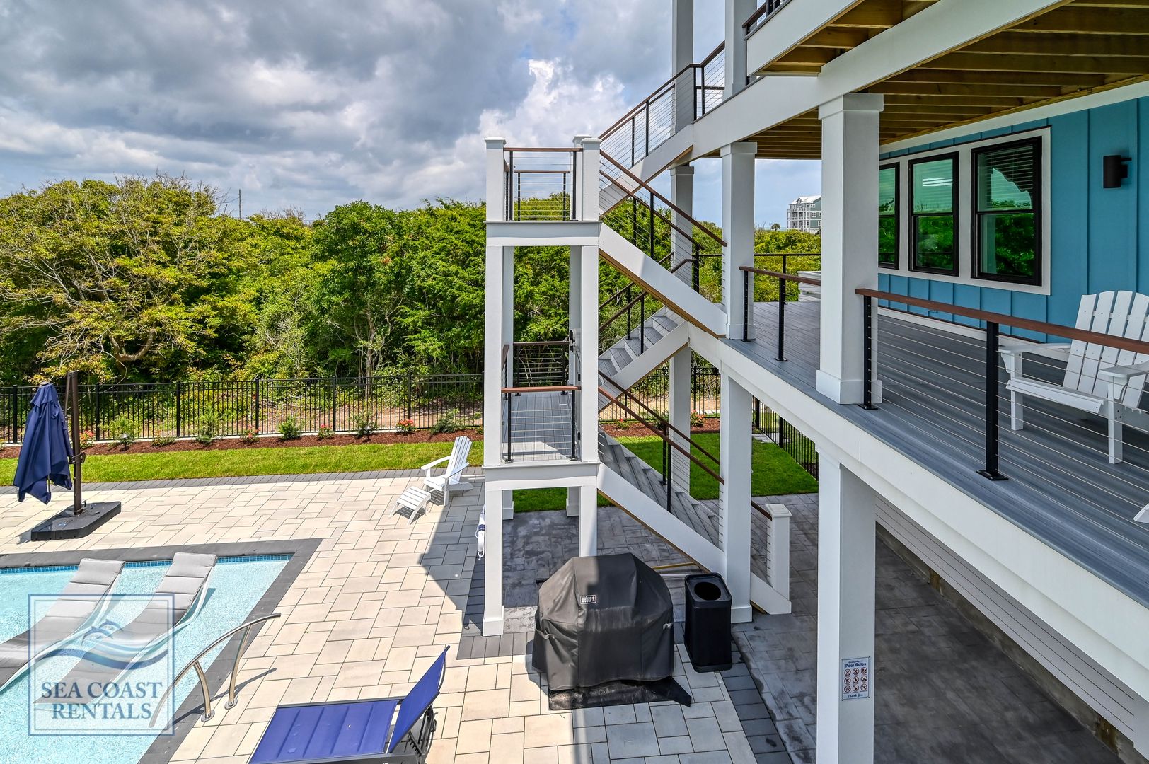 We haven’t even mentioned all the fun you can have both inside and out! Aside from the beautiful beach and ocean, you never have to leave the house to enjoy a fun filled day. There is a 40-foot by 25-foot private pool with a 10-foot tanning deck, a regulation sized Pickleball court, outdoor BBQ grill with prep area, covered outdoor living space with a TV and an outdoor shower. If you prefer to be inside, then you can enjoy the game lounge with an 85-inch smart TV, foosball table, coffee bar, beverage fridge and ice maker that are still steps from the pool.