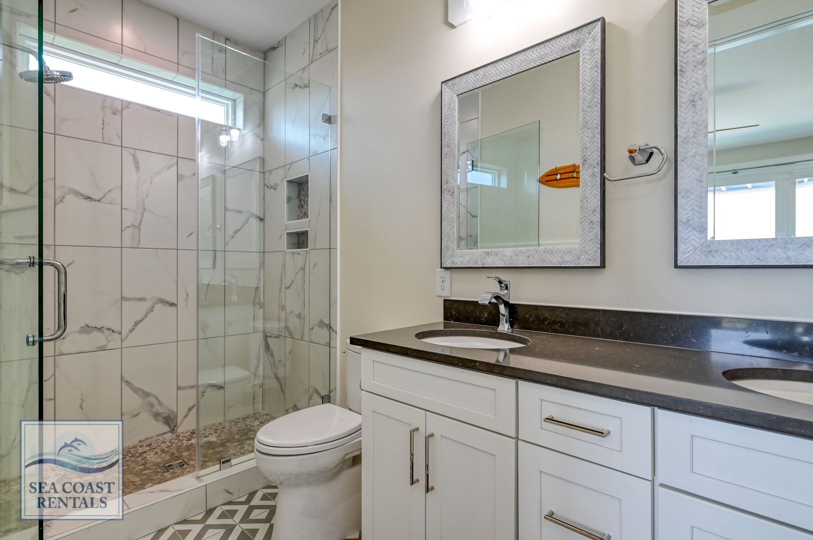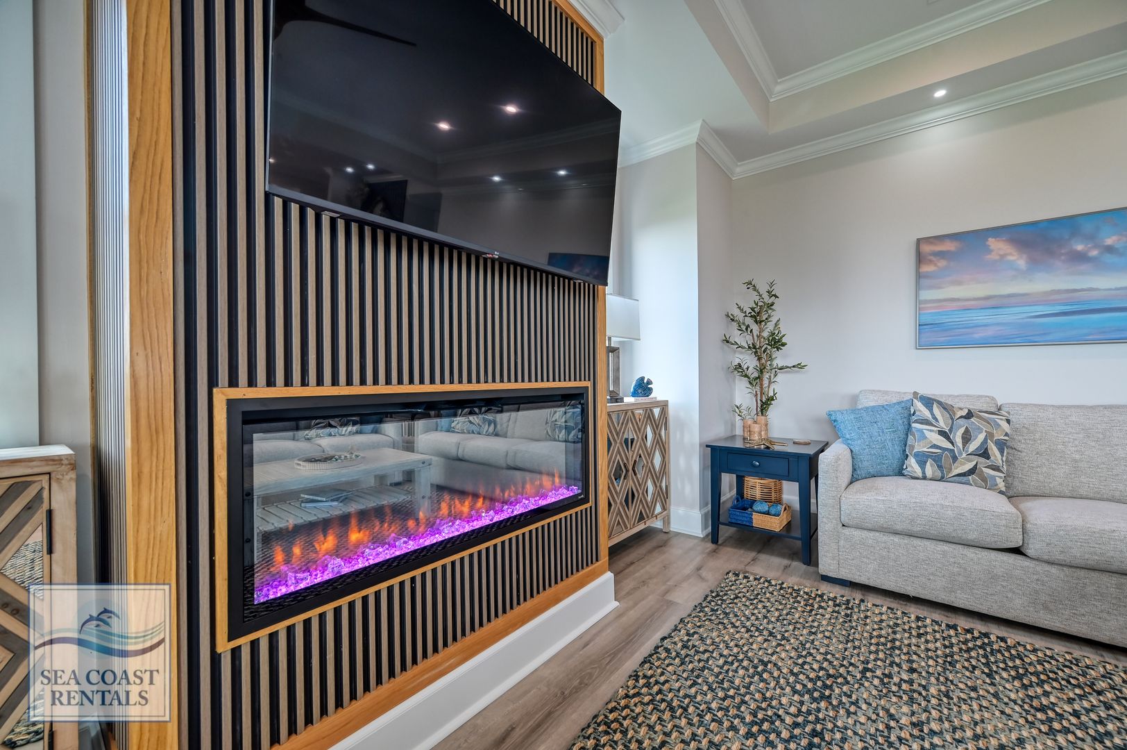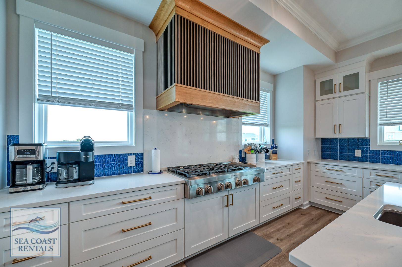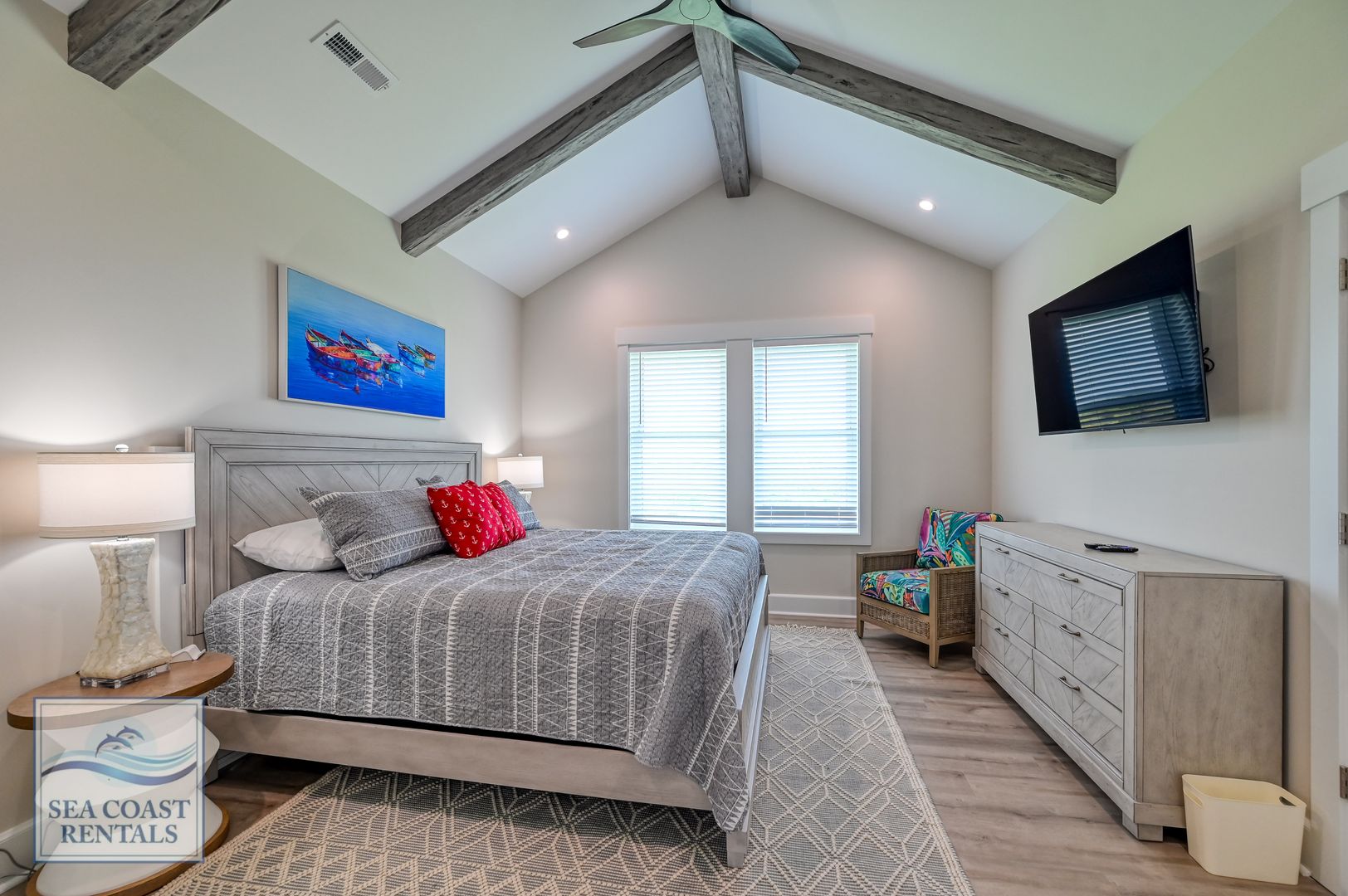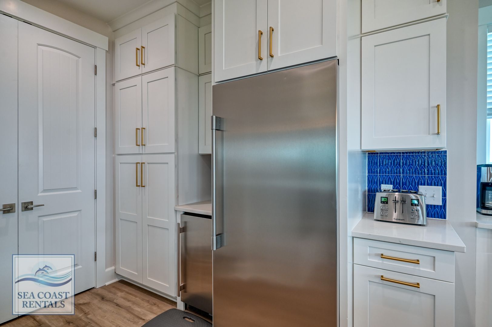We haven’t even mentioned all the fun you can have both inside and out! Aside from the beautiful beach and ocean, you never have to leave the house to enjoy a fun filled day. There is a 40-foot by 25-foot private pool with a 10-foot tanning deck, a regulation sized Pickleball court, outdoor BBQ grill with prep area, covered outdoor living space with a TV and an outdoor shower. If you prefer to be inside, then you can enjoy the game lounge with an 85-inch smart TV, foosball table, coffee bar, beverage fridge and ice maker that are still steps from the pool.