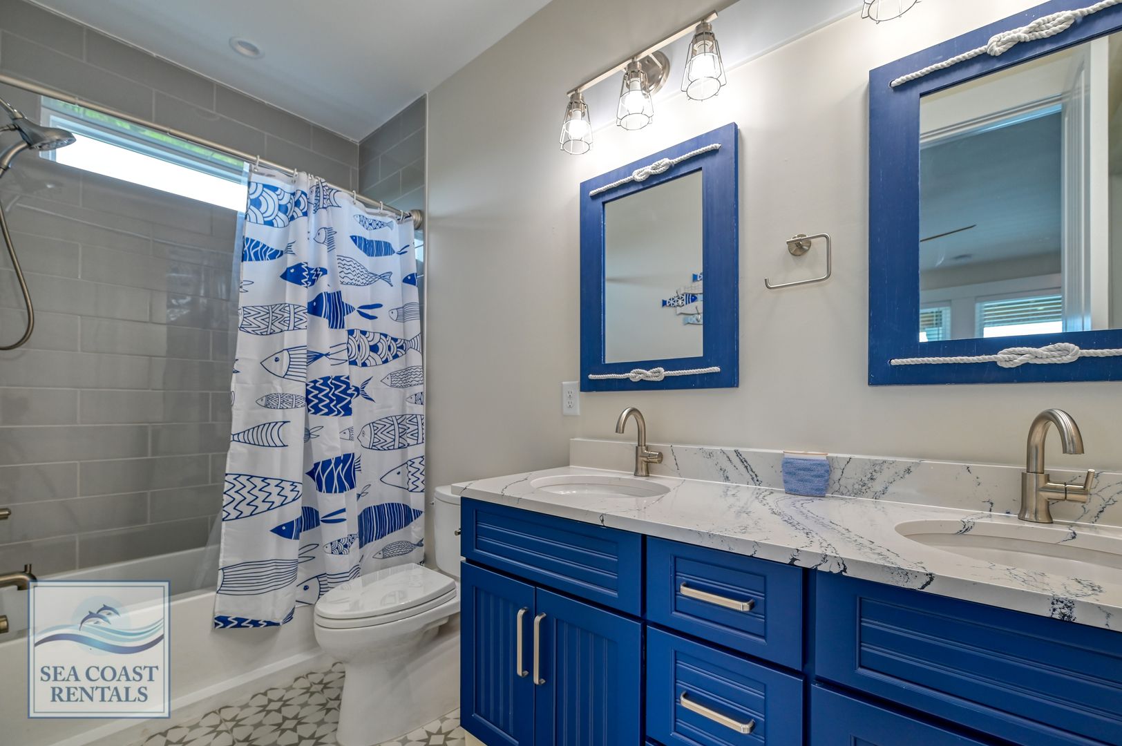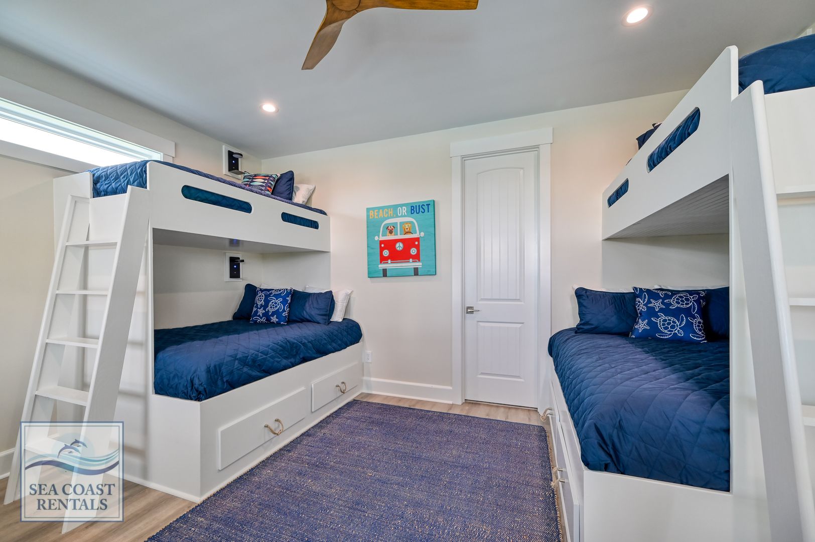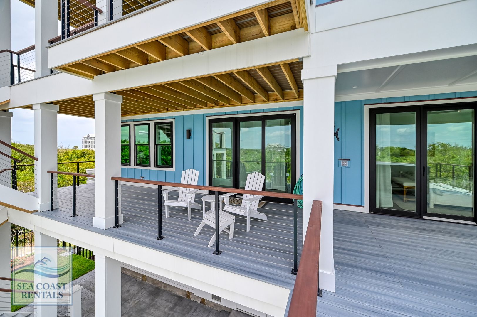 Located in a gated community, this 5,100 sq ft, 4 story home offers stunning views of the ocean and intracoastal waterway from its numerous balconies. You have private community beach access, enclosed garages and parking for 12. It will truly become a home away from home with 8-bedroom suites, all with ensuite bathrooms! There’s plenty of room for the whole family with 7 king beds and 2 twin over full pyramid bunks plus 2 queen sleeper sofas, 24 people can sleep comfortably.