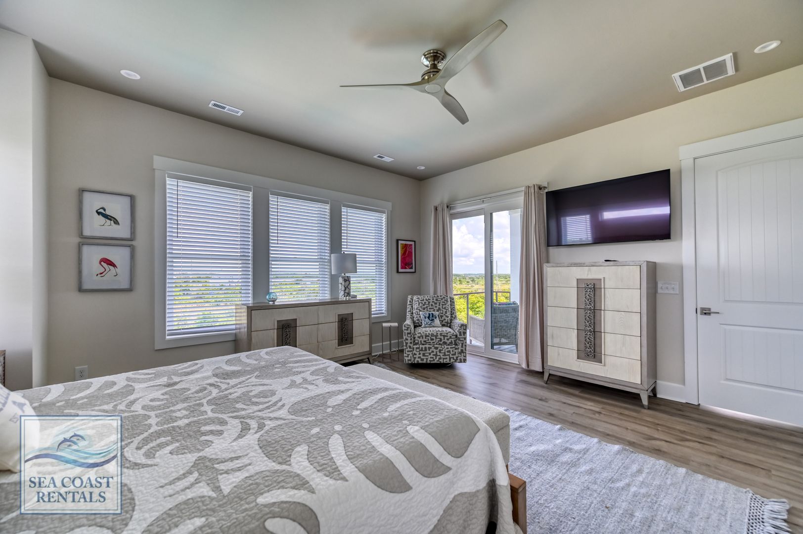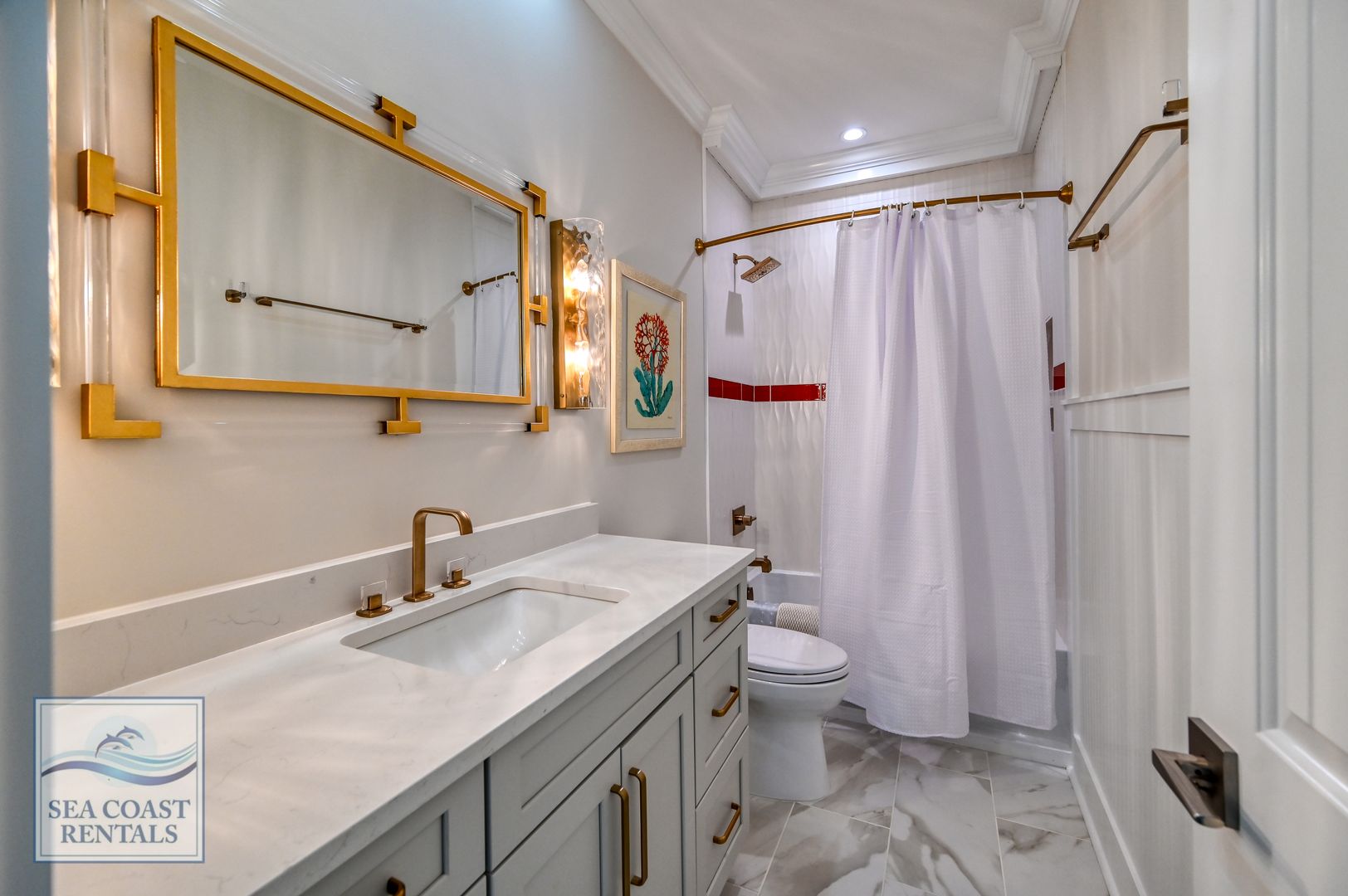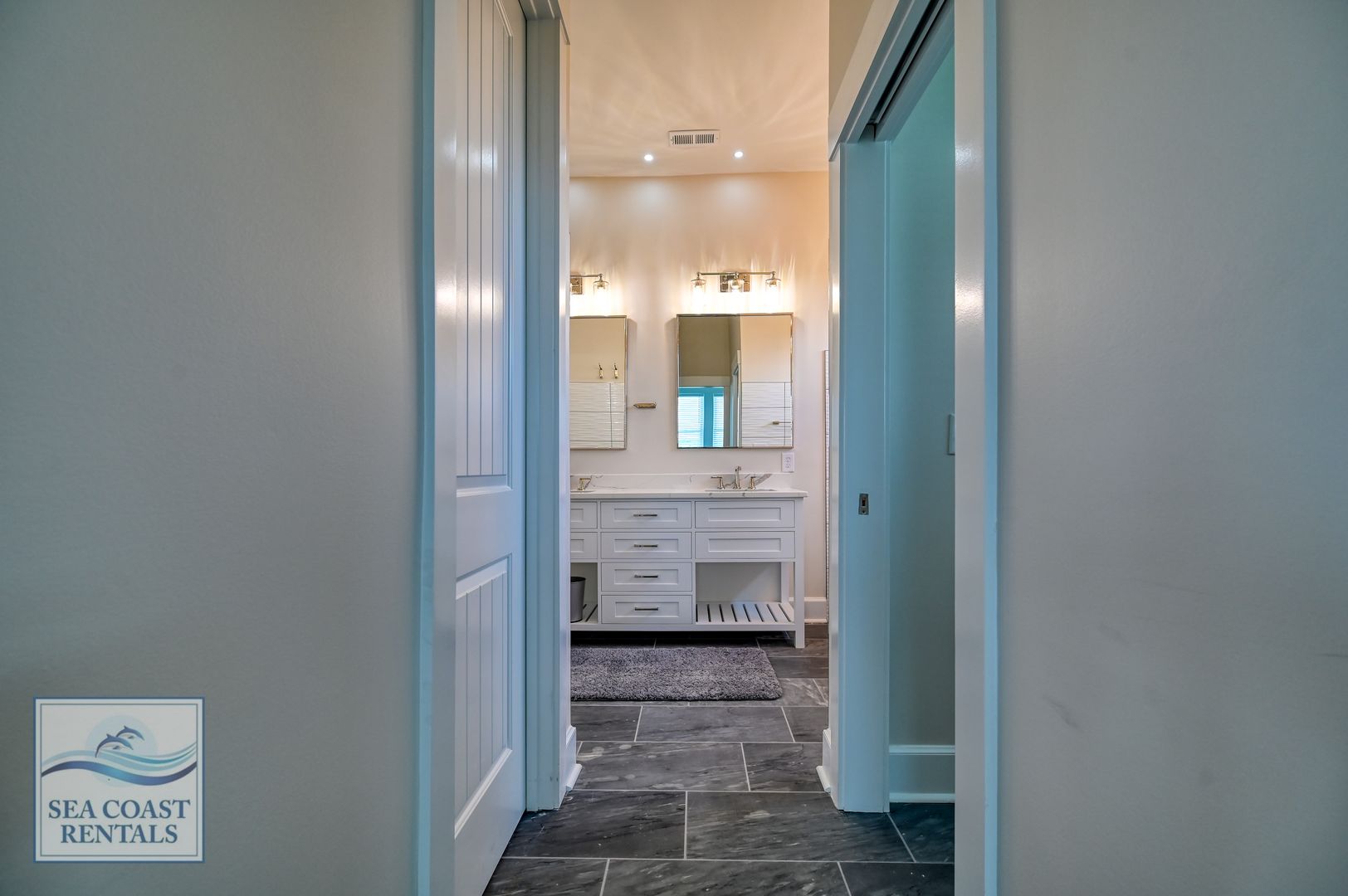 Located in a gated community, this 5,100 sq ft, 4 story home offers stunning views of the ocean and intracoastal waterway from its numerous balconies. You have private community beach access, enclosed garages and parking for 12. It will truly become a home away from home with 8-bedroom suites, all with ensuite bathrooms! There’s plenty of room for the whole family with 7 king beds and 2 twin over full pyramid bunks plus 2 queen sleeper sofas, 24 people can sleep comfortably.