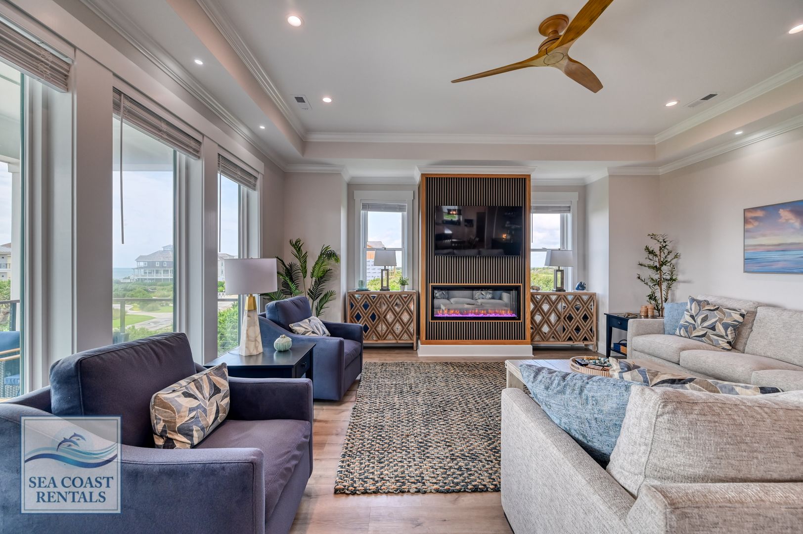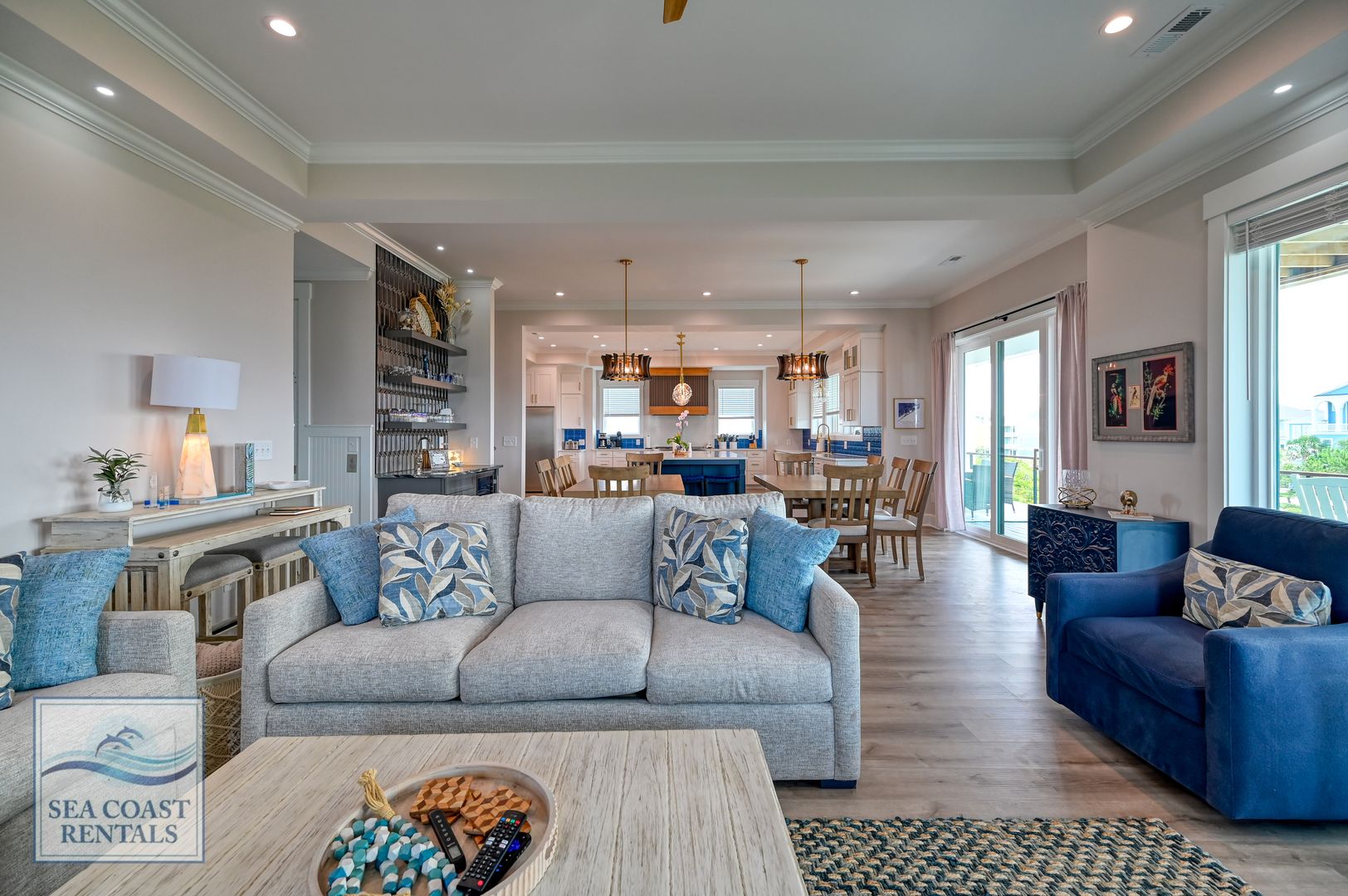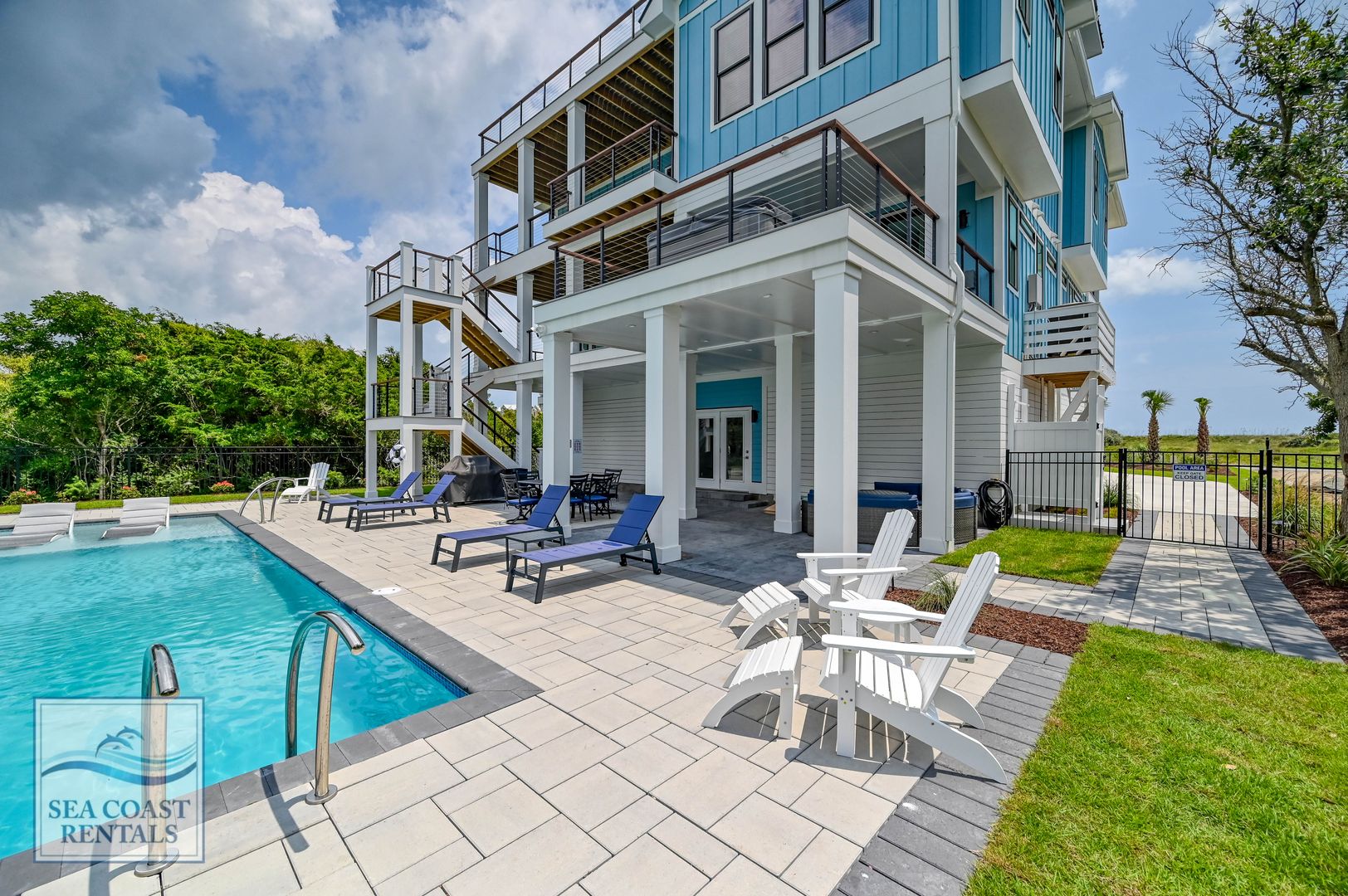 This Ultra Premier property is available for executive high end monthly rentals during the off-season in North Topsail Beach. This extensive home is a resort unto itself with water views of both the sound and the beachfront. No expense was spared in the construction of this brand new luxury build. Perfect for a casual beach lifestyle without sacrificing any of the comforts and quality of a sumptuous home.