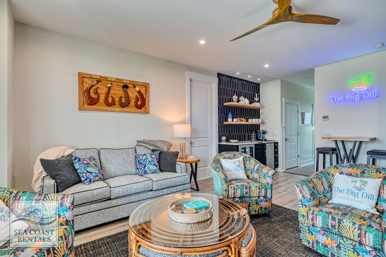 If you feel the need to leave The Big Dill, you’ll only be 6 minutes from the closest grocery store and there are several shops and restaurants in the mainland town of Sneads Ferry and island town of Surf City. If golf is your game, the North Shore Country Club and Golf Course is minutes away and if you bring your boat or jet ski, a boat launch is even closer. Public access to kayaking and paddle boarding is a short drive away as well as playgrounds for the kids.