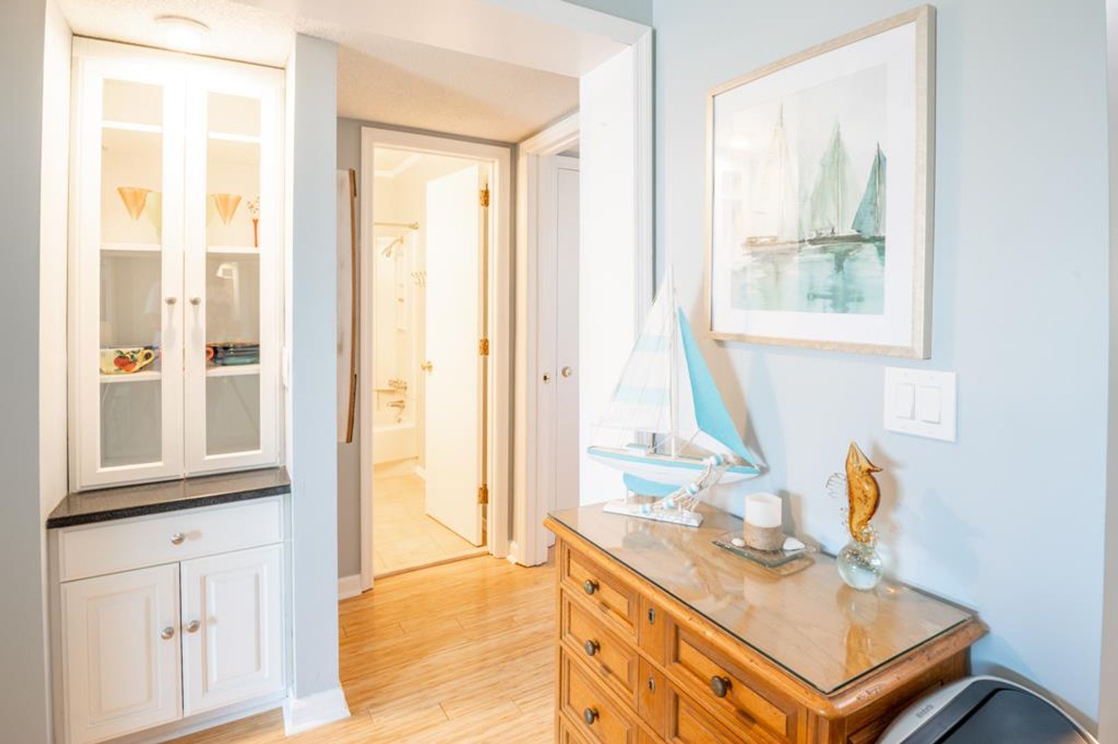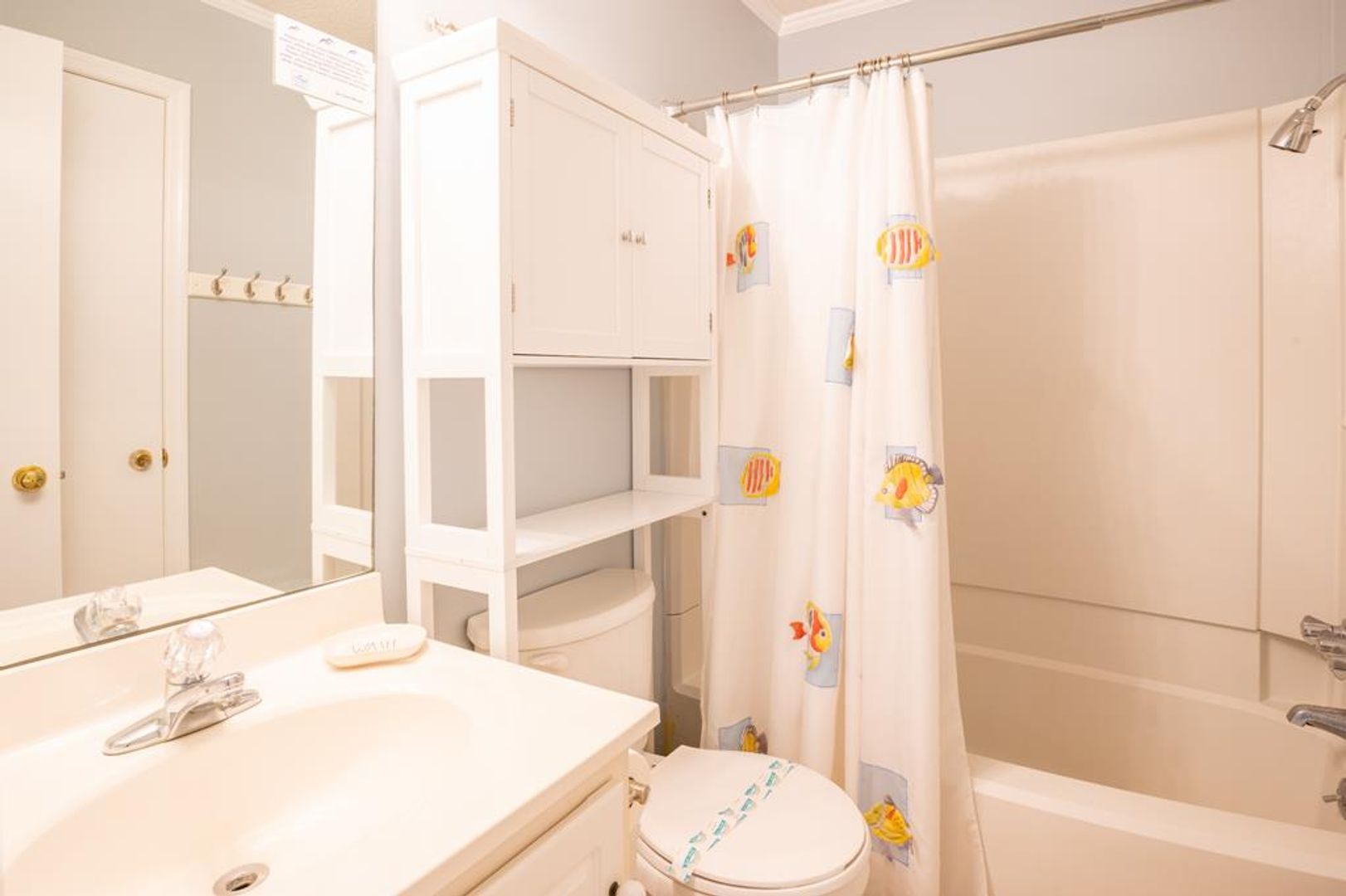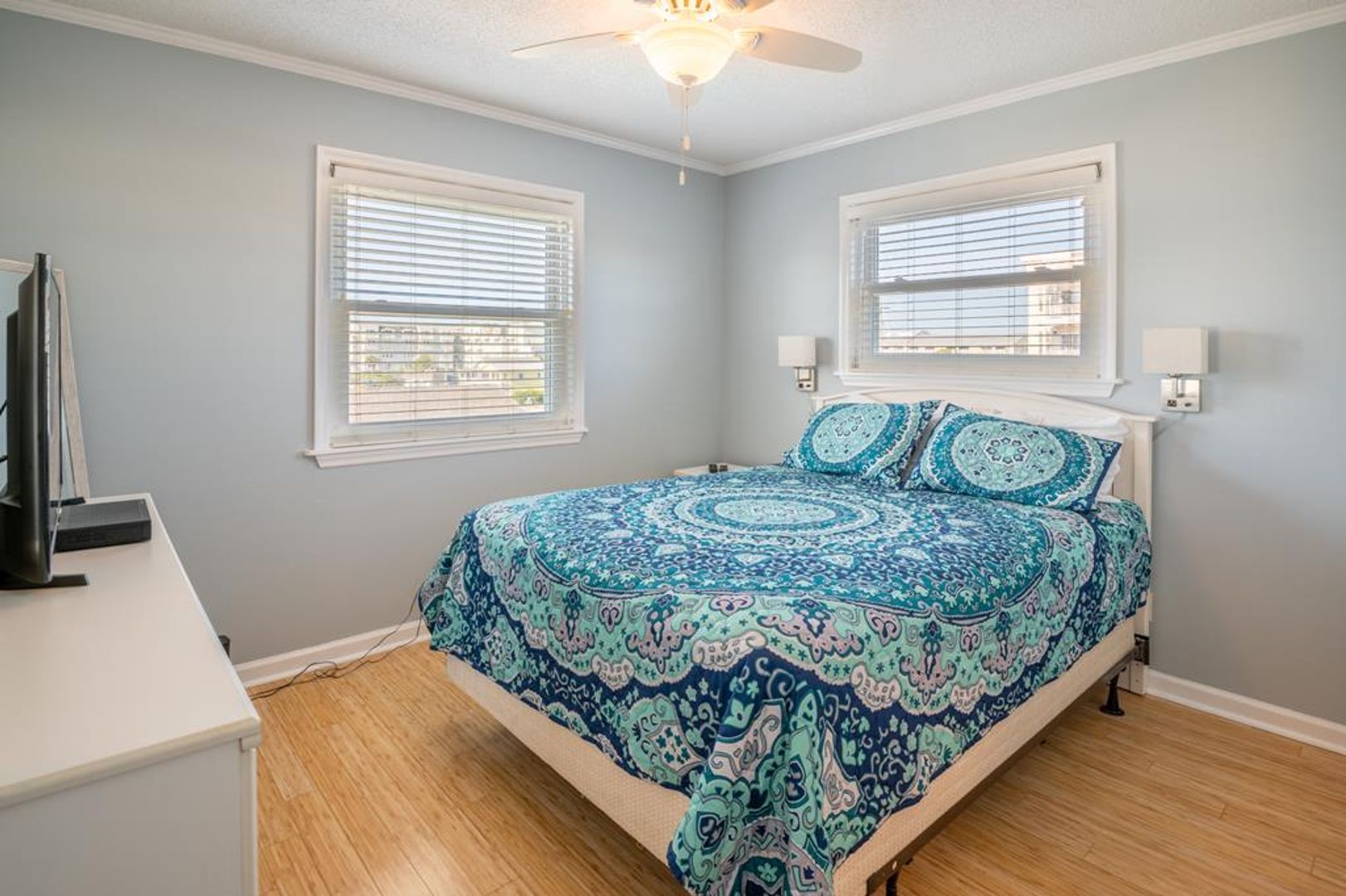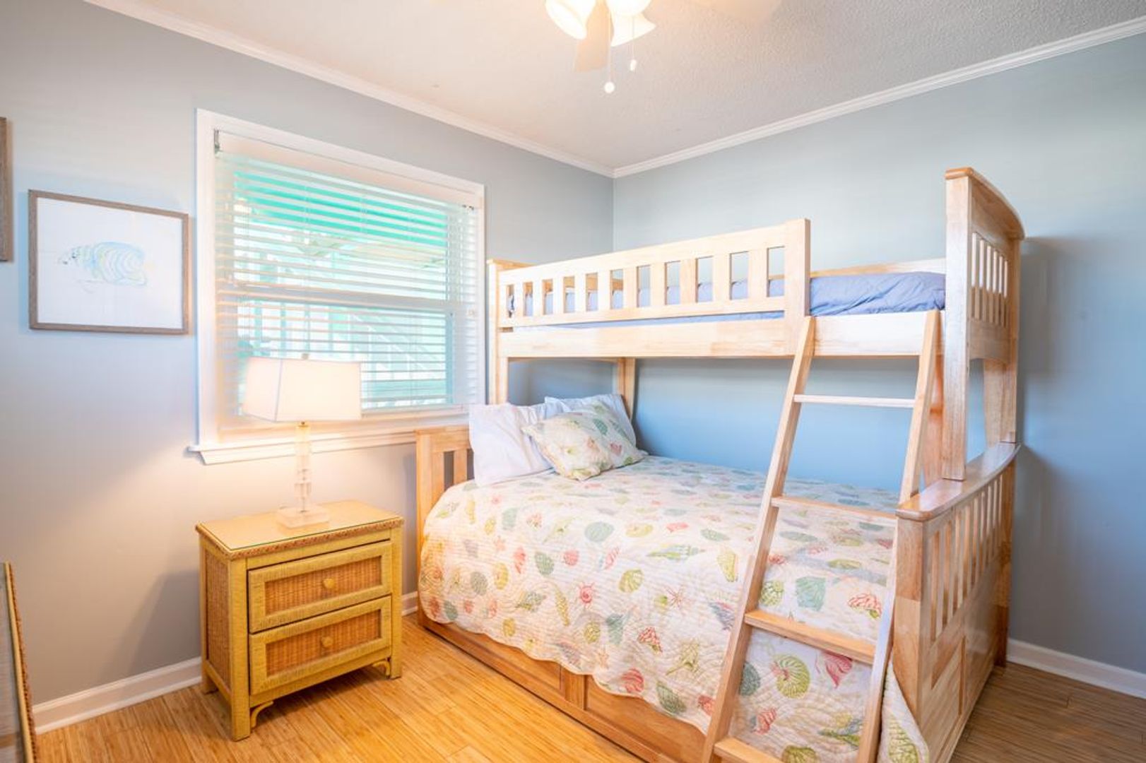 Your winter getaway has two bedrooms, one with a king-size bed with an ensuite bathroom and the other with a twin over full bunk bed (and a trundle if needed). A guest bathroom with a tub/shower compo as well as a front load washer and dryer. Relax in the newly redecorated living room with access to the back deck that looks over the pool and the ocean. A full kitchen for all your meal needs. Your entry-level outside walkway also has a coffee nook to relax and have your morning coffee.