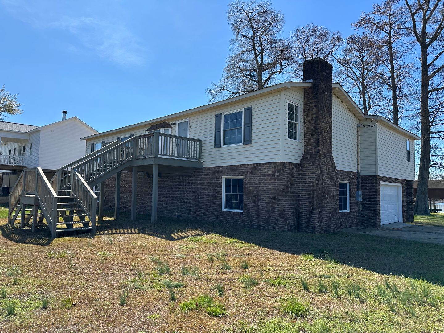 Canal front! Discover this 3‑bed, 2‑bath home in Chocowinity, NC featuring practical storage and a spacious deck ideal for outdoor living. The property includes an outside lift and a private boat dock for convenient water access. Primary bedroom boasts panoramic views of the canal and access to the large deck. Interior comforts include ceiling fans and mini‑split systems for efficient heating and cooling. Recently remodeled with luxury vinyl flooring throughout most of the house. A garage provides secure vehicle or equipment storage. This home is thoughtfully equipped for comfortable, accessible living in a desirable location. Don't wait, this rental will not last long! Access to boat lift available for an additional $250 per month.