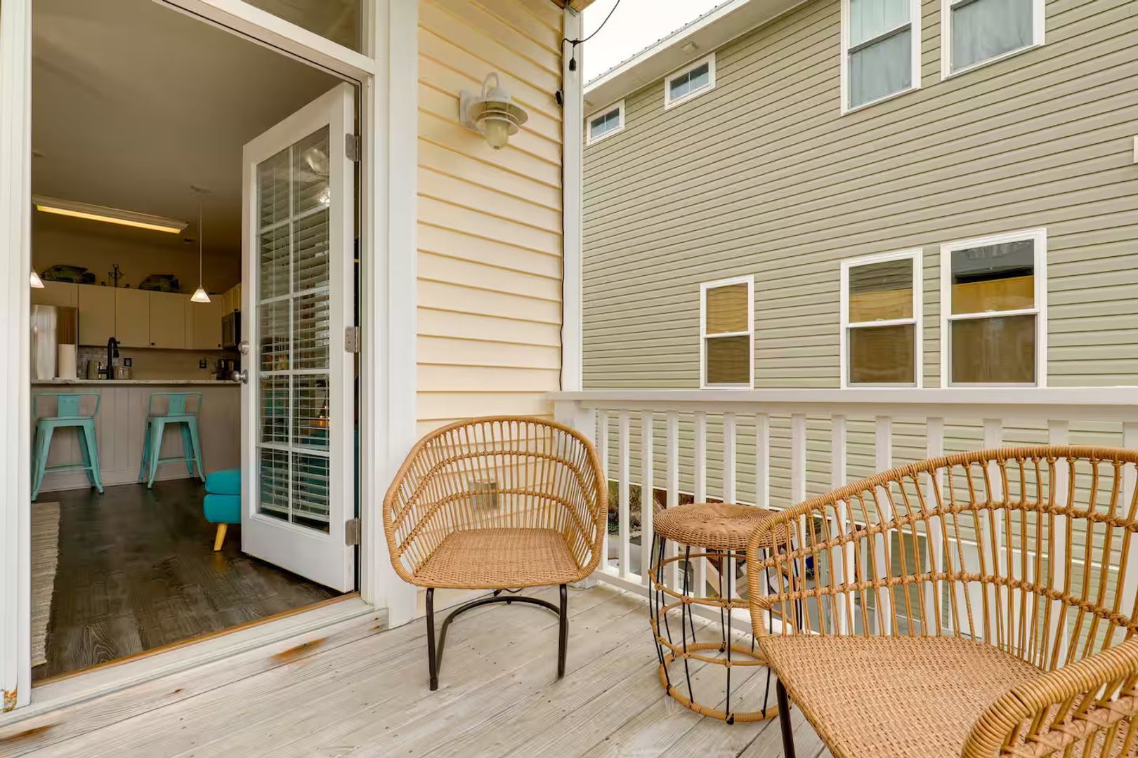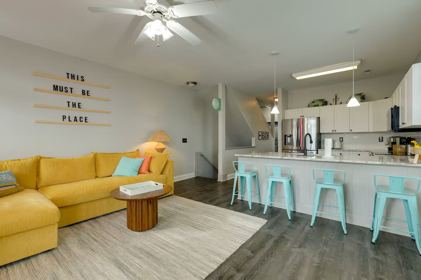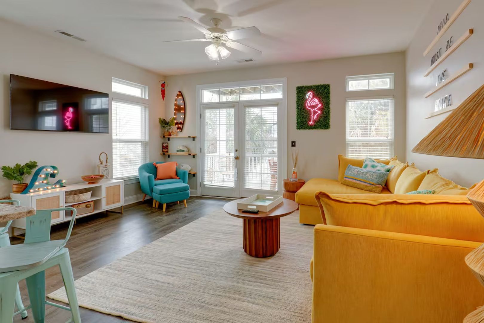 This eclectic and trendy beach rental features retro mod furnishings, easy-to-clean LVP flooring, and granite kitchen counters. The primary suite is a dream with a private porch. Nestled into a lovely neighborhood: sleep and traffic will be quiet, but you are still close walking distance to all the action.